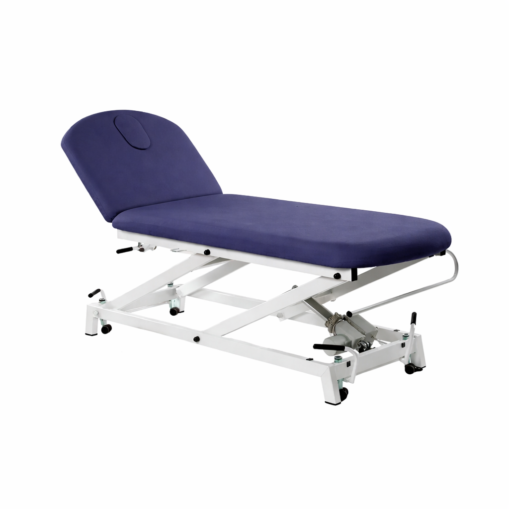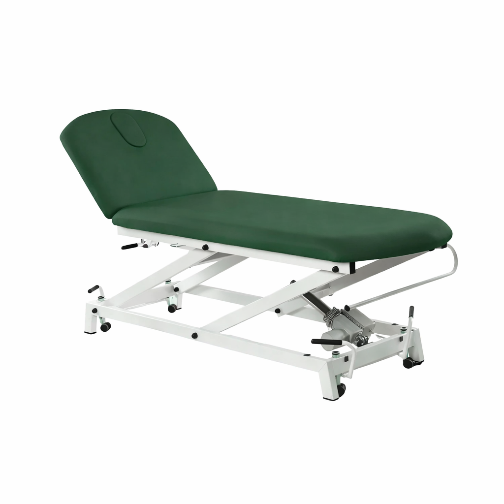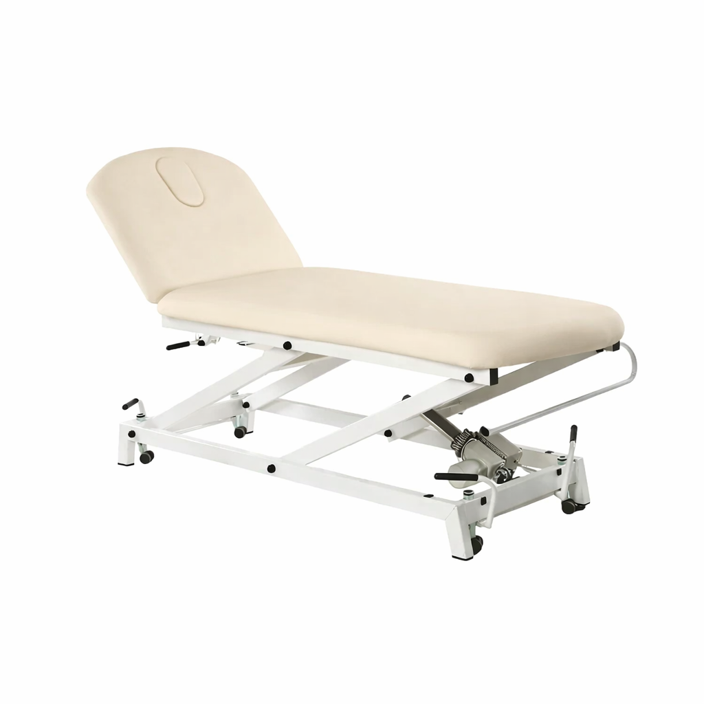 Camilla hidráulica de reconocimiento de 2 cuerpos con respaldo reclinable en negativo FisioConfort.