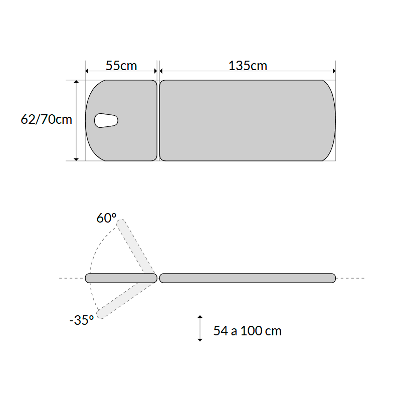 Cabezal con agujero y tapón facial respaldo reclinable en negativo.