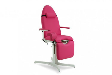 Sillón de ginecología de altura fija. Incluye perneras ginecológicas y bandeja extraible de acero inoxidable.