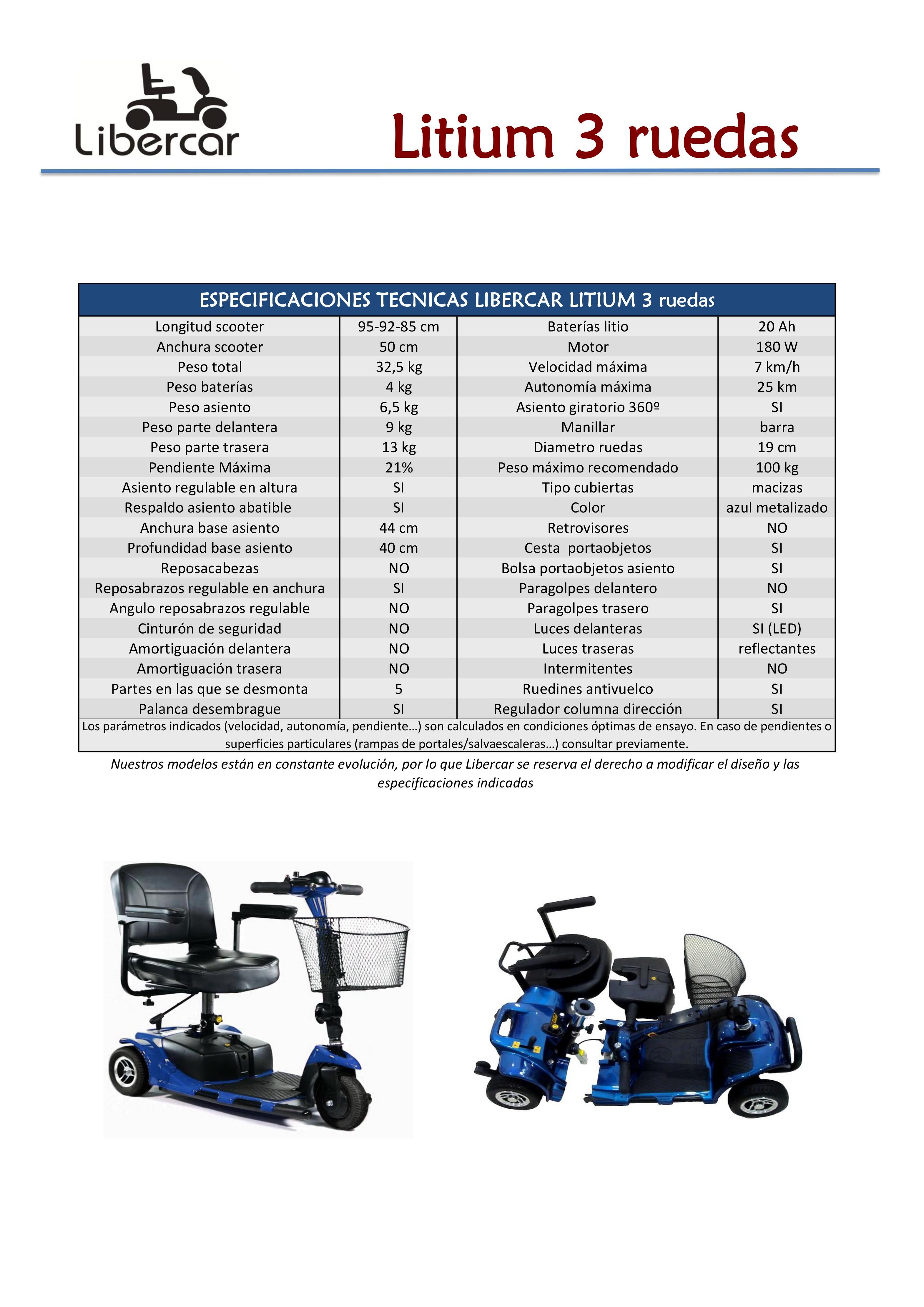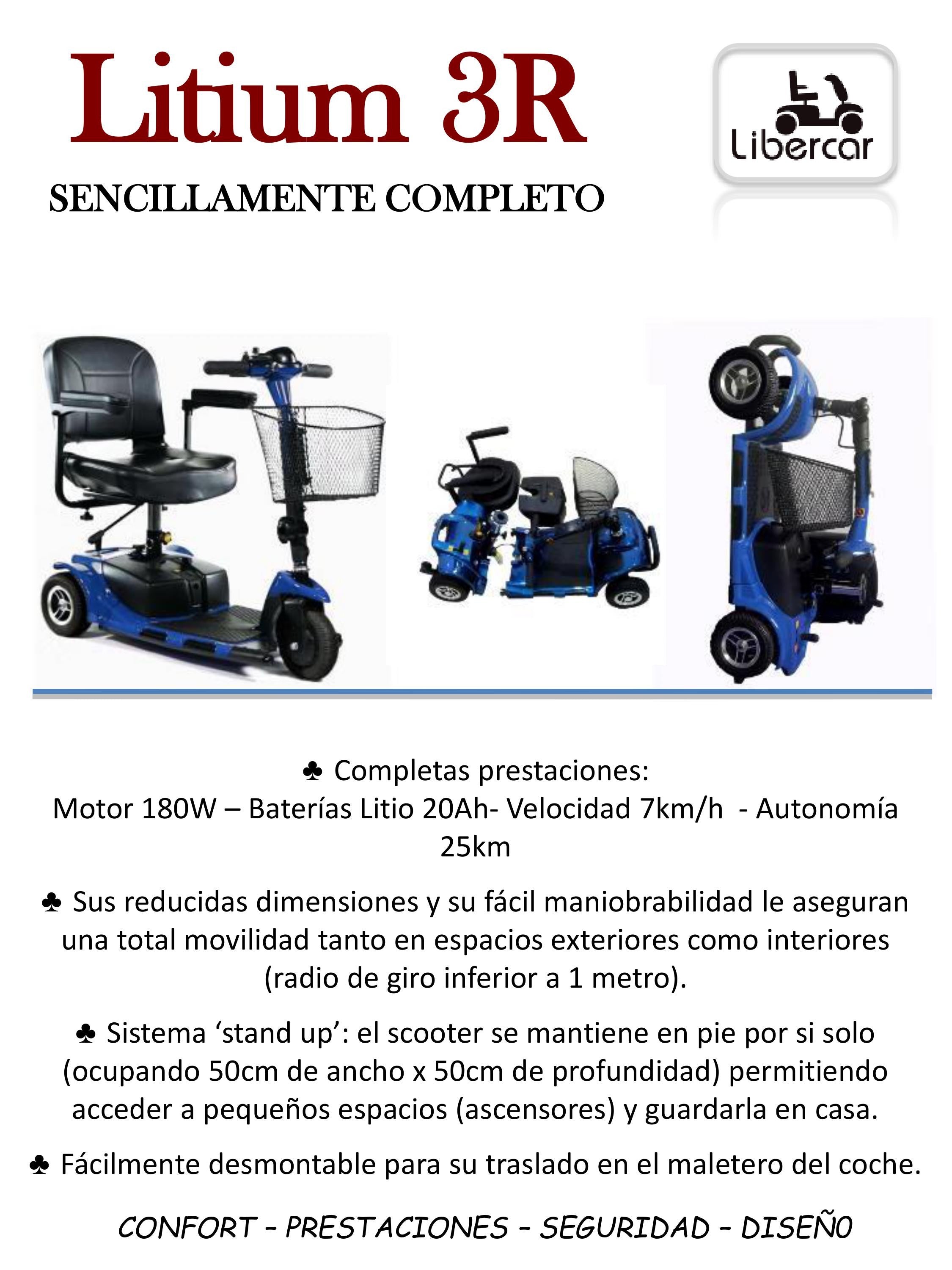 Las reducidas dimensiones y su fácil maniobrabilidad del Scooter Libercar Litium 3 Ruedas le aseguran una total movilidad tanto en espacios exteriores como interiores (radio de giro inferior a 1 metro).