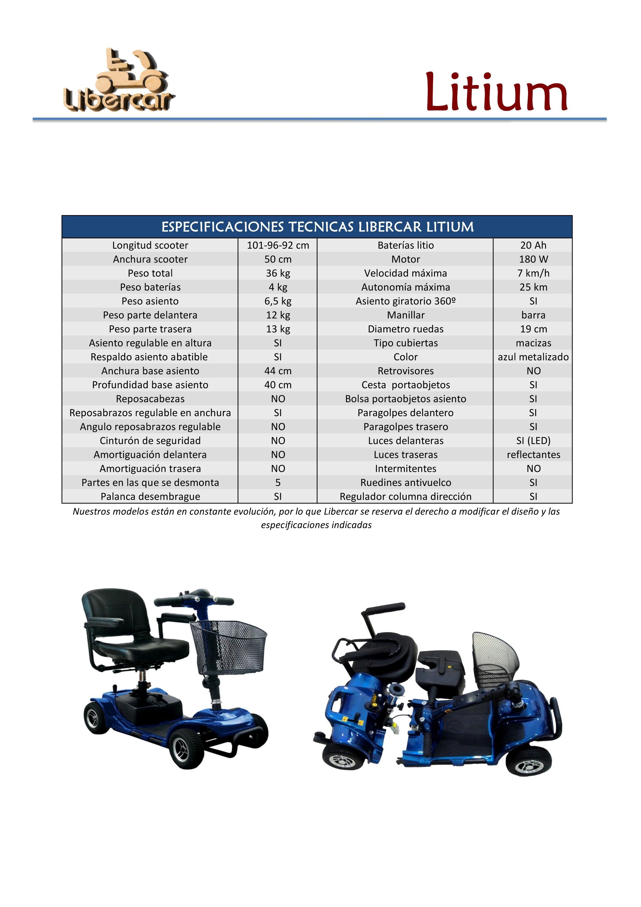 Scooter Libercar Litium desontable más ligero del mercado con un peso total de 36 kg. Confort, prestaciones, Seguridad y diseño