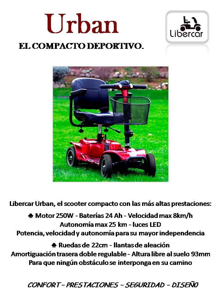 Libercar Urban, el scooter compacto con las más altas prestaciones: Motor de 250W. Baterías 20 Ah. Velocidad máxima de 7,5 km/h. Autonomía 25 km. Pendiente máxima de subida de 12º.