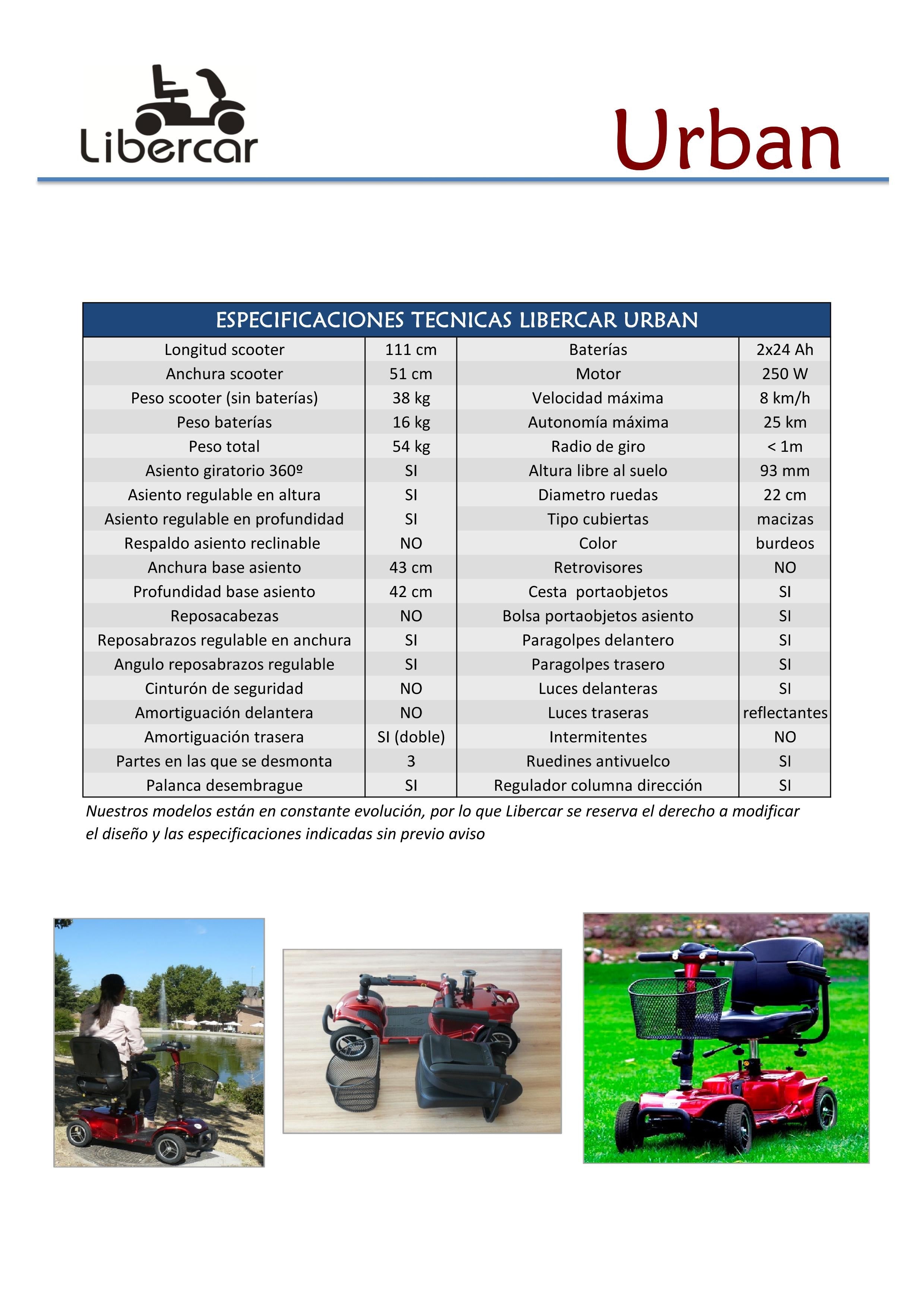 Especificaciones Técnicas Scooter Libercar URBAN: