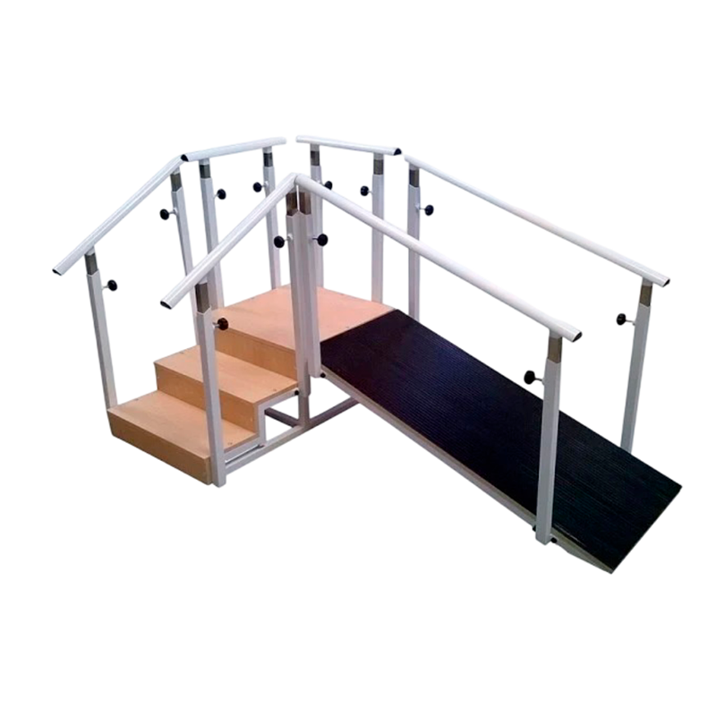 Escalera con rampa metálica con pasamanos tres peldaños y regulable en altura (Ref. Fm-069-R-3)
