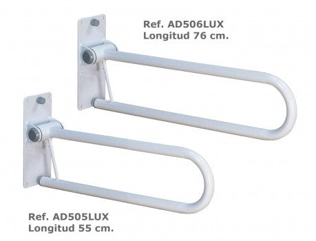 Disponible en dos medidas 76 cm y 55 cm de largo. La barra abatible de longitud de 76 cm. (AD506LUX) está diseñada para WC que incorporan la mochila. La barra de 55 cm (AD505LUX) es para aquellos WC que no incorporan la mochila, ya sea porque esta empotrada o está supendida.