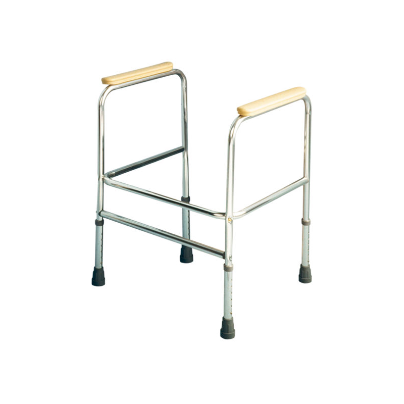 Esta es una solución muy práctica y económica en especial cuando no se desea o no se pueden instalar barras y asideras en las paredes. Proporciona un buen apoyo en ambos lados como ayuda para incorporarse y sentarse, y además se regula a la altura requerida. Al ser de aluminio, no se oxida a pesar del ambiente húmedo del baño y es muy ligero. Se suministra desmontado.