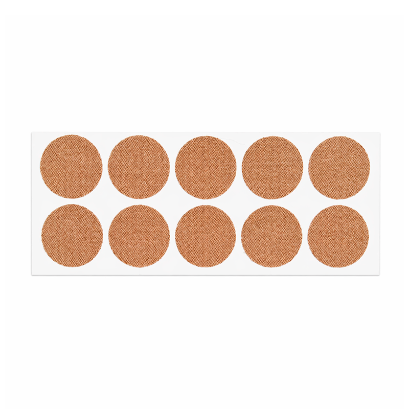 Adhesivos textiles circulares especialmente indicados para su uso con imanes. Además, el papel cuenta con unas pequeñas hendiduras que permiten que el adhesivo se despegue con mayor facilidad.