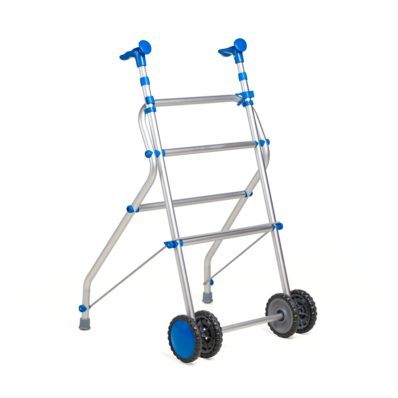 Este andador combina estabilidad y maniobrabilidad gracias a sus cuatro ruedas delanteras de 140 mm que permiten un desplazamiento suave y sin esfuerzo, ideal para giros y movimientos en espacios reducidos. En la parte trasera, cuenta con tacos antideslizantes que brindan un excelente agarre y control al caminar, ofreciendo mayor seguridad al usuario.