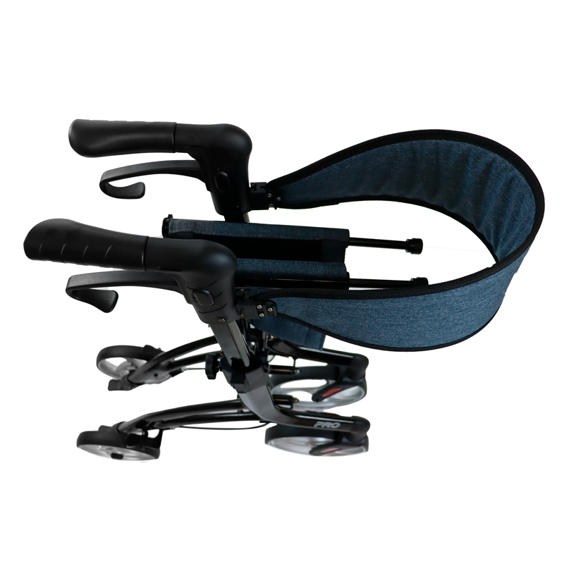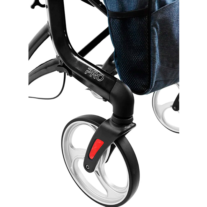 El andador se caracteriza por sus ruedas grandes (delanteras Ø 25 cm - traseras Ø 20 cm), que lo hacen perfecto para todo tipo de superficies. Además cuenta con una palanca de ayuda para elevar las ruedas delanteras para sortear obstáculos como escaleras o bordillos fácilmente.