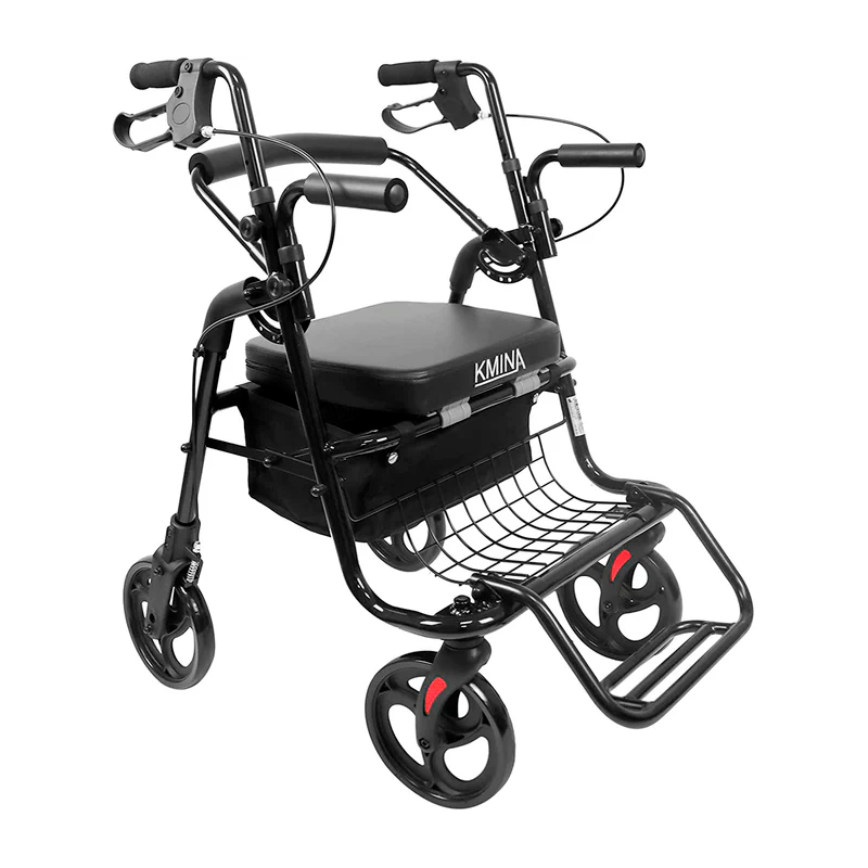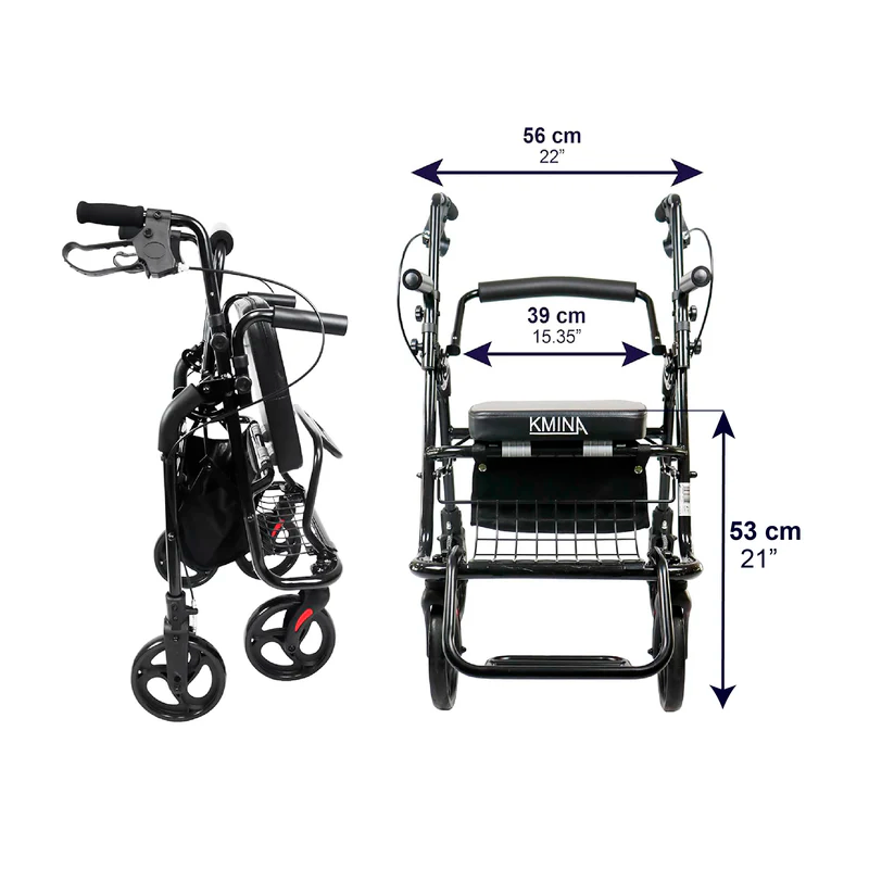 Este andador y silla de ruedas cuenta con una cesta segura con una capacidad de 15 kg, perfecta para usar dentro y fuera de casa, ya que no hace falta quitarla cuando pleguemos el andador. Además cuenta con un asiento cómodo y respaldo acolchado.