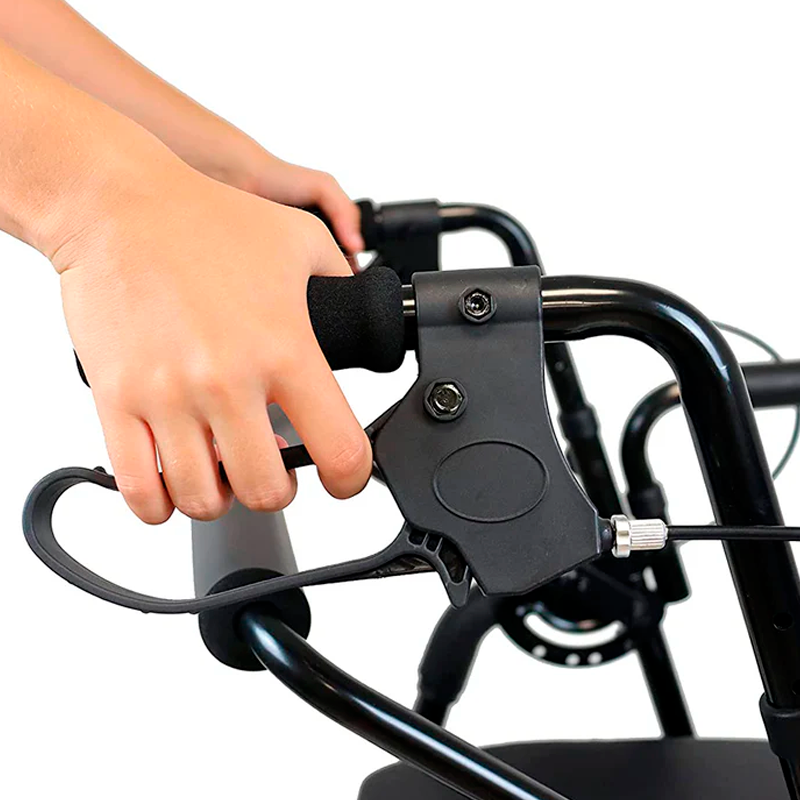 SEGURO: Incrementa la seguridad al contar con un sistema de freno de maneta regulable que permite ajustar la presión de los frenos para así frenar con menos fuerza. Además, cuenta con un freno de estacionamiento con el que es posible inmovilizar el andador completamente.