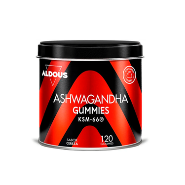 Presentada en 120 gummies de Ashwagandha KSM-66 para 120 días. Vegano. Sabor cereza.
