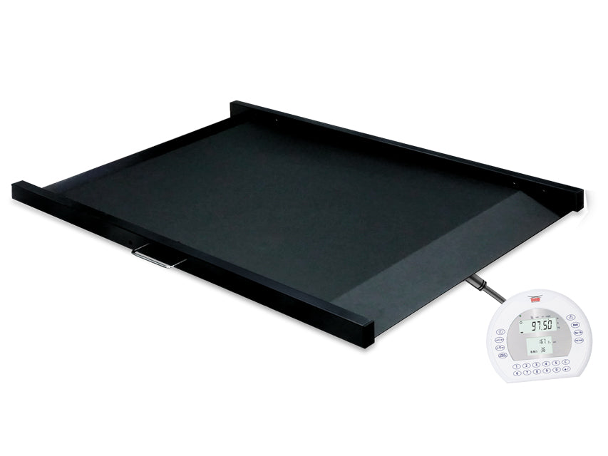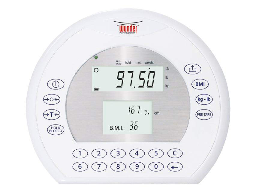 Pantalla ABS doble con triple lectura simultánea: peso, altura e IMC.
