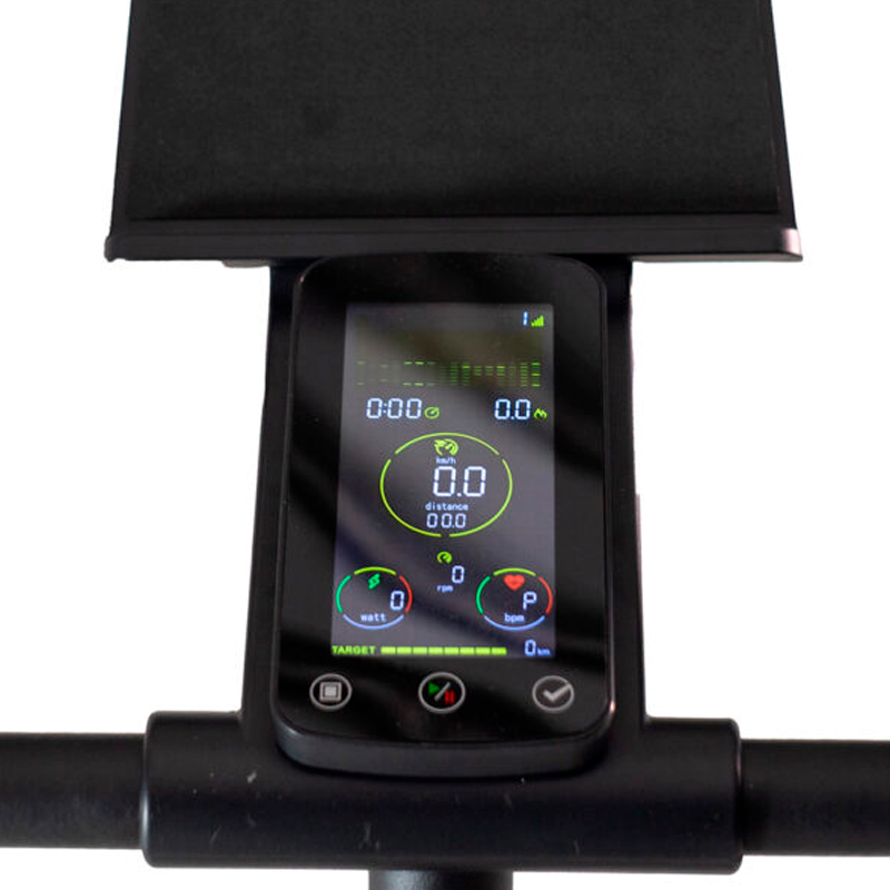 Con 32 niveles de intensidad, conectividad Bluetooth FTMS y un diseño moderno con anillo LED según resistencia, ofrece una experiencia inmersiva y motivadora. Además, su chasis compacto y acceso fácil la hacen ideal para cualquier espacio.