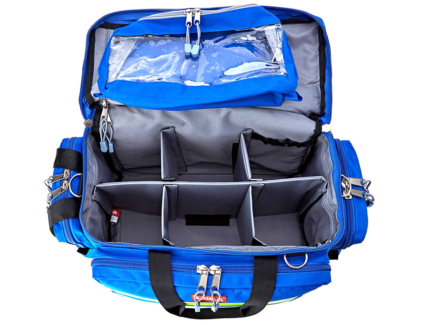 Bolsas de emergencia profesionales extremadamente espaciosas con compartimentos internos ajustables que permiten una organización personalizada del espacio.