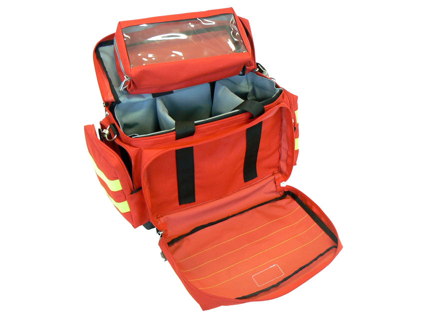 Bolsas de emergencia profesionales extremadamente espaciosas con compartimentos internos ajustables que permiten una organización personalizada del espacio.