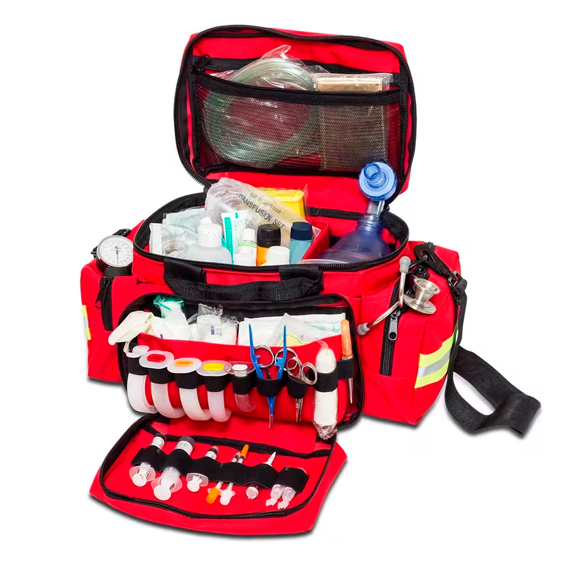 Con múltiples compartimentos y asas ergonómicas, facilita el transporte rápido en situaciones críticas. Disponible en varios colores para adaptarse a tu preferencia. Ideal para clínicas, ambulancias, hogares y equipos de respuesta rápida que requieren acceso inmediato a materiales esenciales.