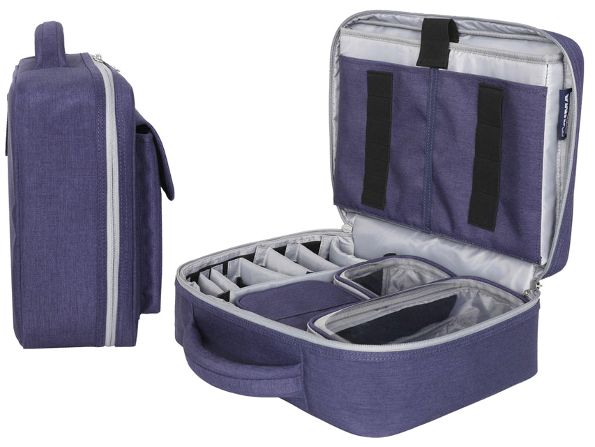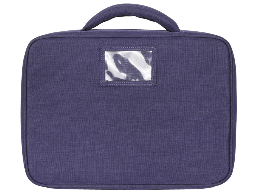 Incluye una cómoda asa de transporte, cierre de cremallera, almohadillas de goma antideslizantes y etiqueta para el nombre en la parte posterior.