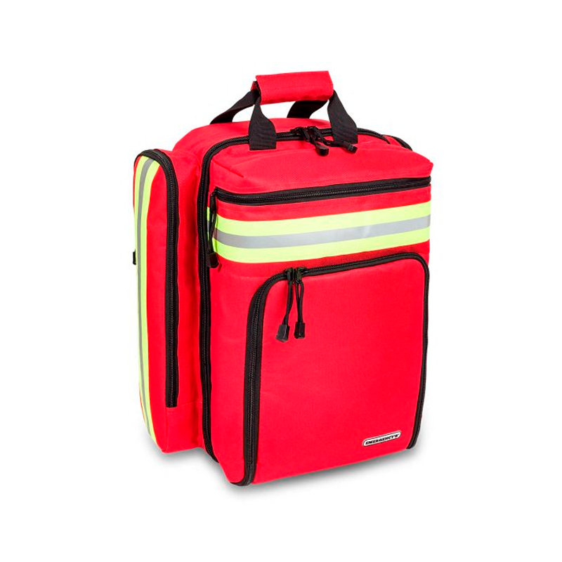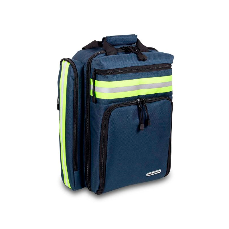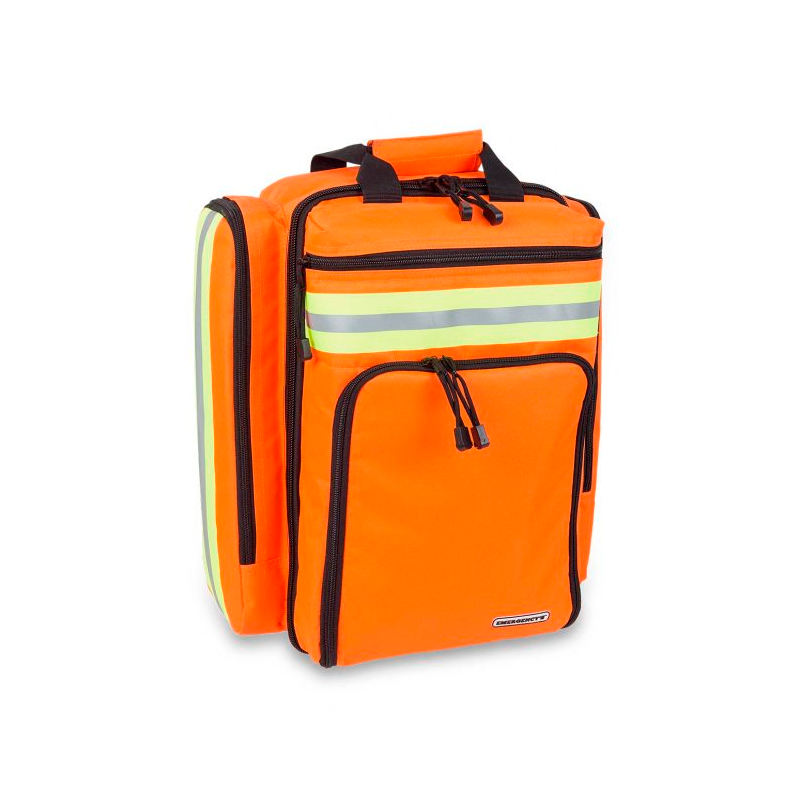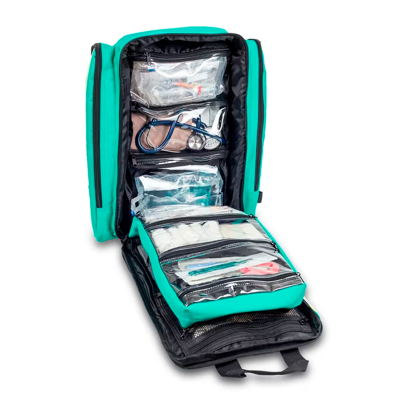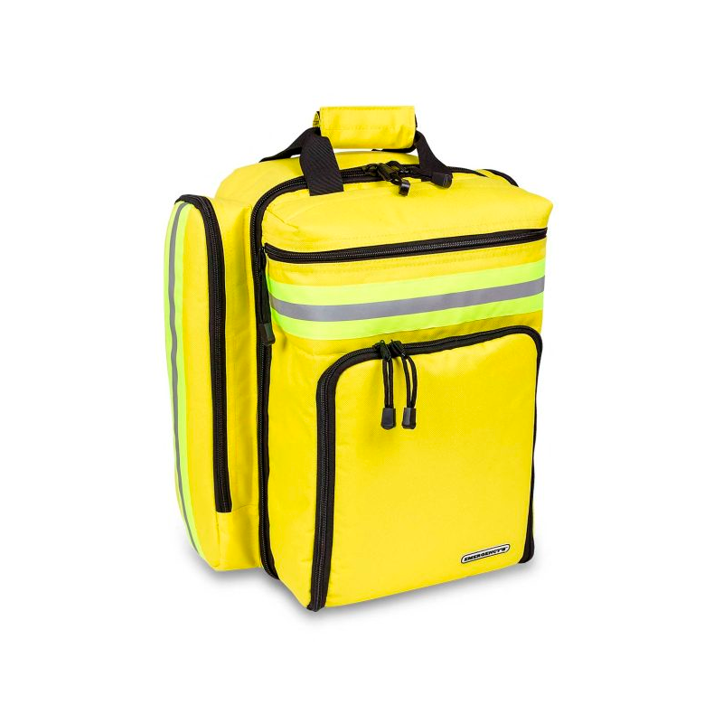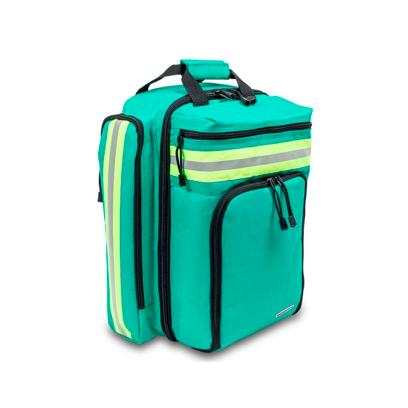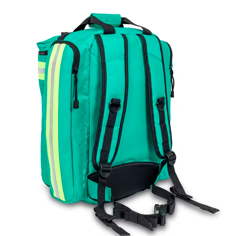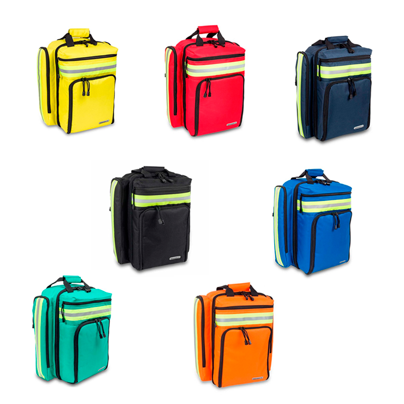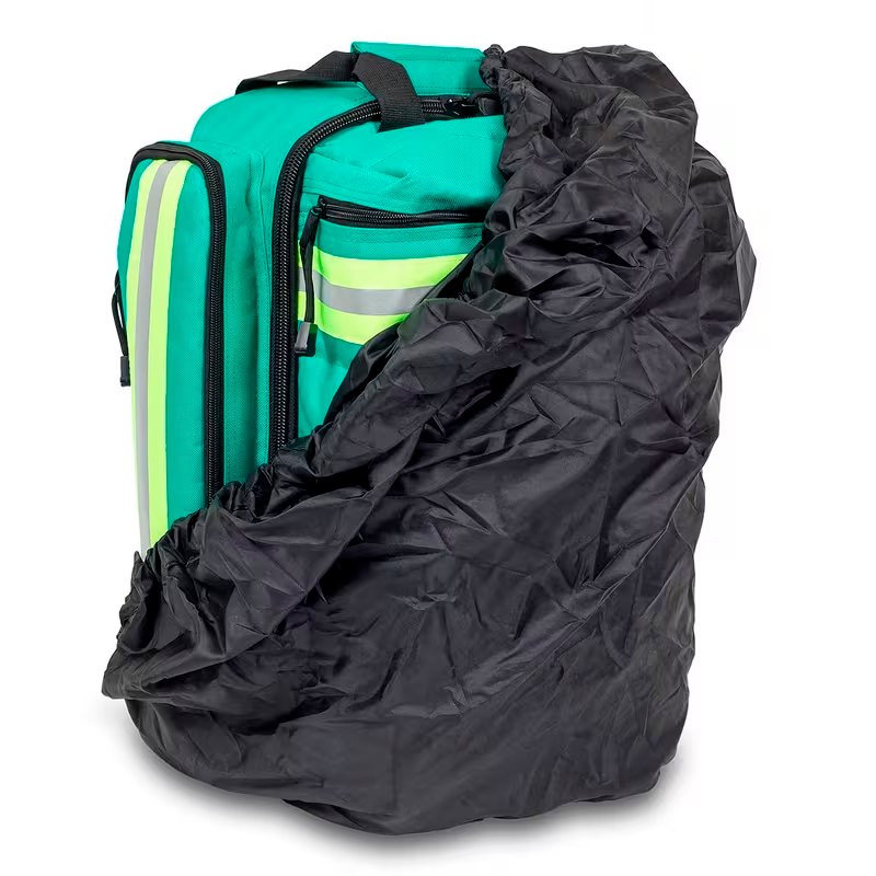 Cuenta también con dos bolsillos laterales de gran capacidad desarrollados para alojar el material de diagnóstico, además de dos bolsillos externos frontales: (superior) diseñado para alojar el material de auto-protección, e (inferior) apto para alojar cualquier tipo de desfibrilador, además de un bolsillo inferior con una funda impermeable para protegerla de lluvias extremas.