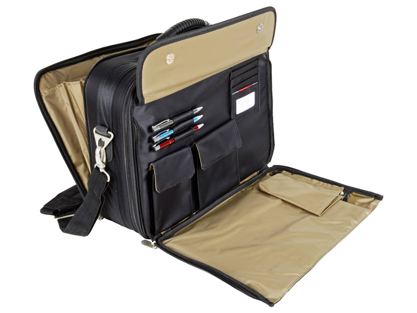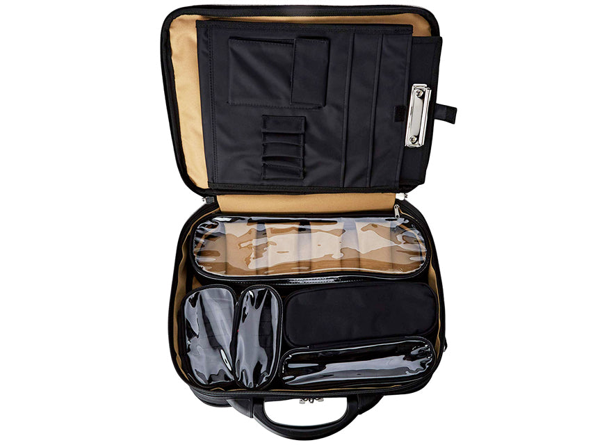 Incluye: 3 bolsas transparentes desmontables con velcro, 1 portaampollas con 23 bandas elásticas con velcro, 1 bolsa grande con 4 separadores con velcro, portapapeles, portadocumentos y varios bolsillos. Correa para el hombro, asa y correas ocultas para llevarla en la espalda.