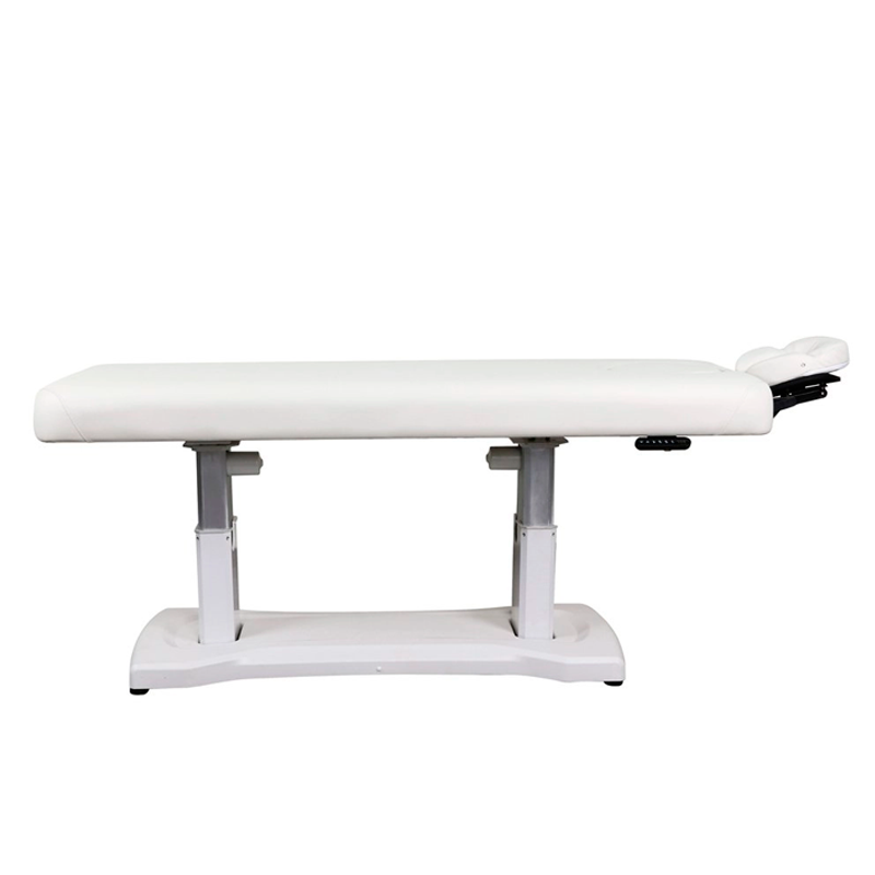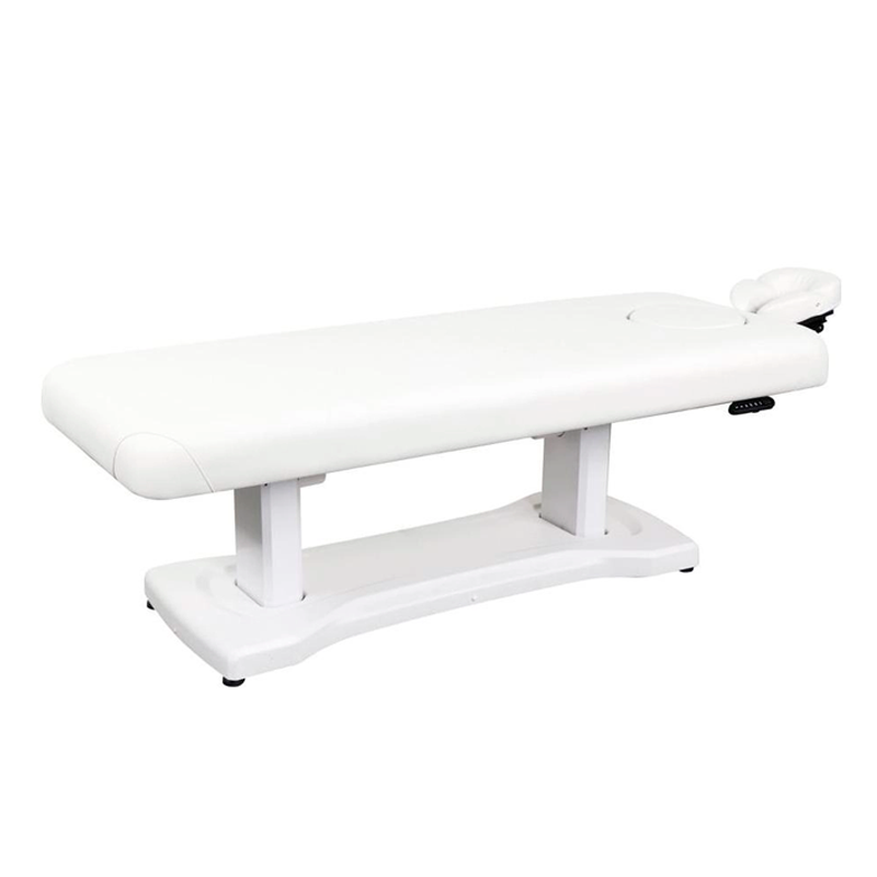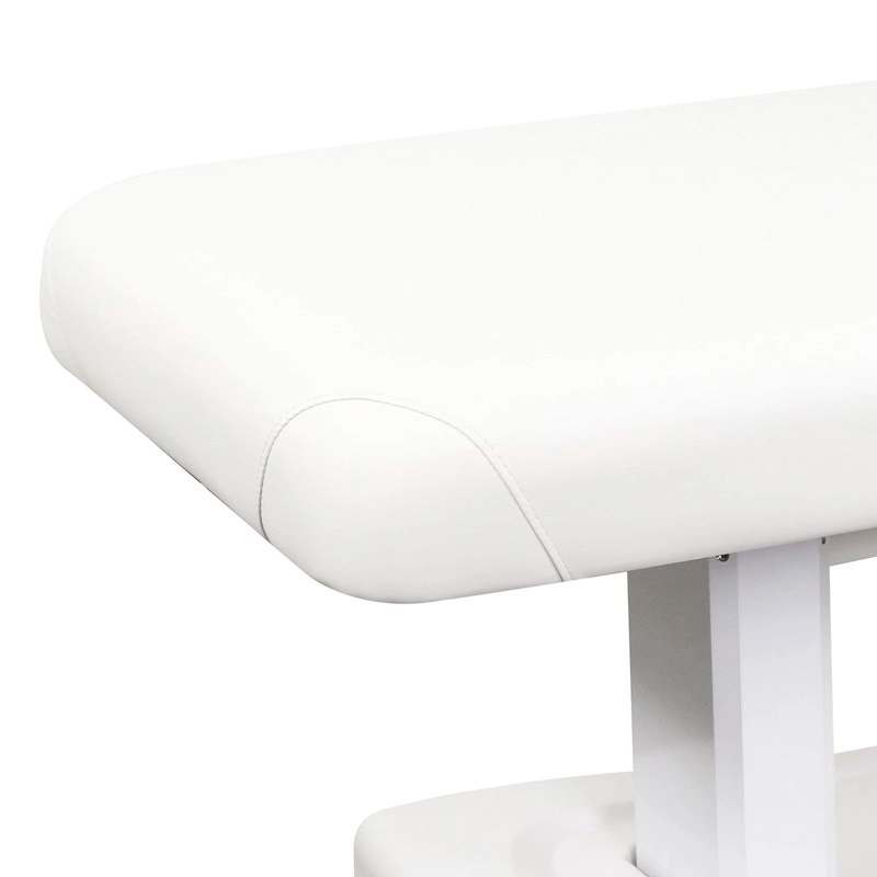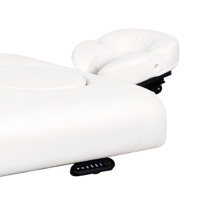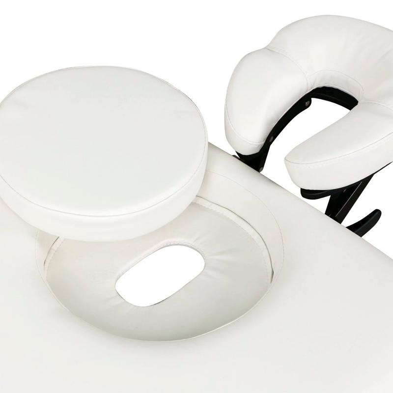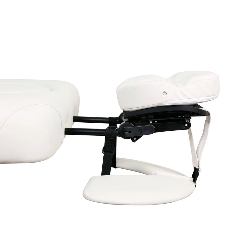 Reposacabezas extraíble con ajuste de ángulo para máxima comodidad en tratamientos boca abajo. Estructura de acero muy resistente y robusta construcción de doble columna que otorga máxima estabilidad y asegura una larga durabilidad incluso en usos muy intensivos. Confort asegurado gracias a sus 20 cm de acolchado SuperSoft y su tapizado Easy Breathe de PU blanco de alta calidad.