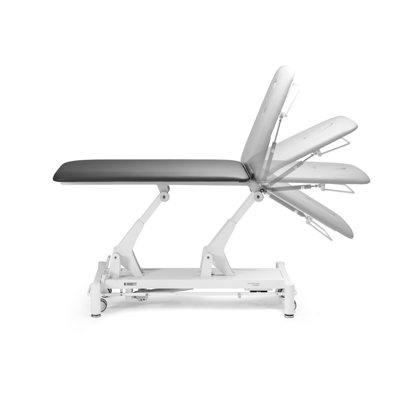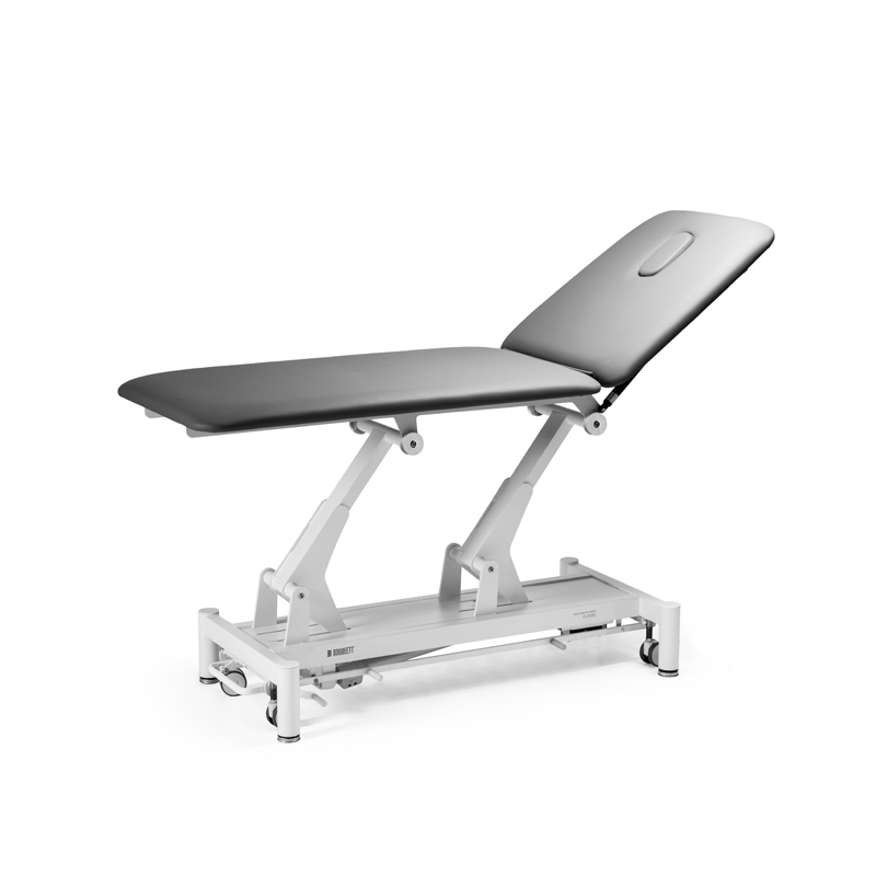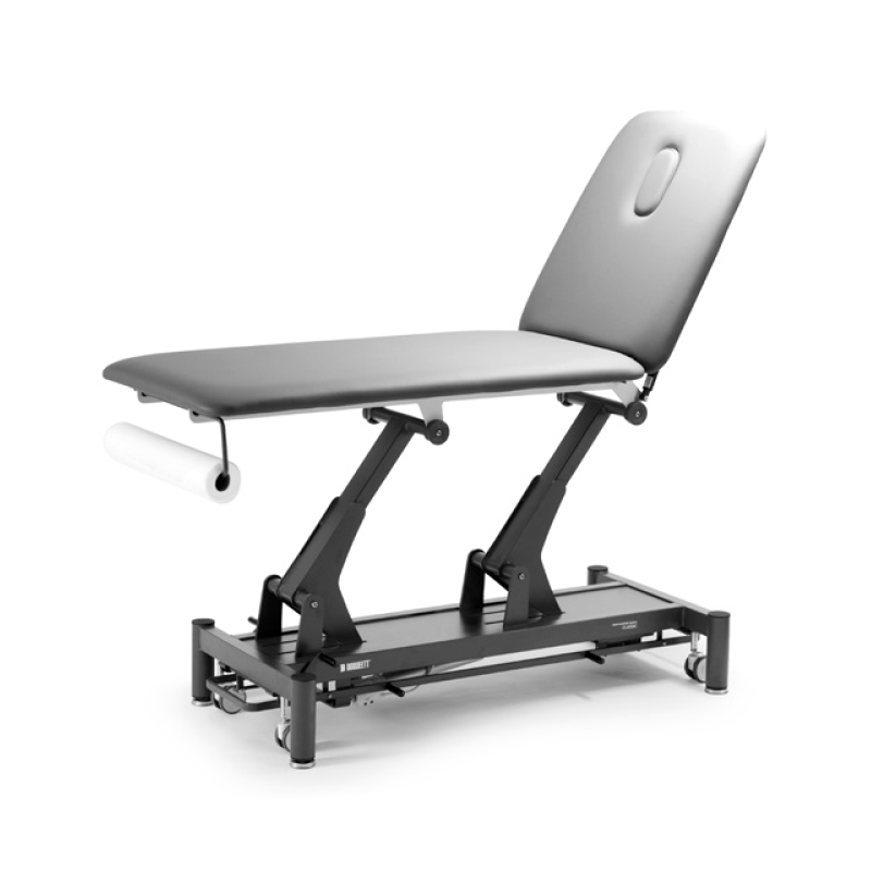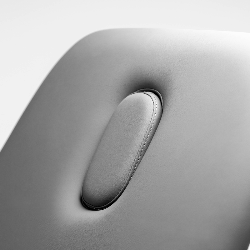 Motor eléctrico de funcionamiento silencioso y fluido para transiciones suaves entre posiciones sin perturbar la sesión terapéutica. Tapizado resistente y fácil de limpiar, esencial para mantener estándares de higiene en espacios clínicos.