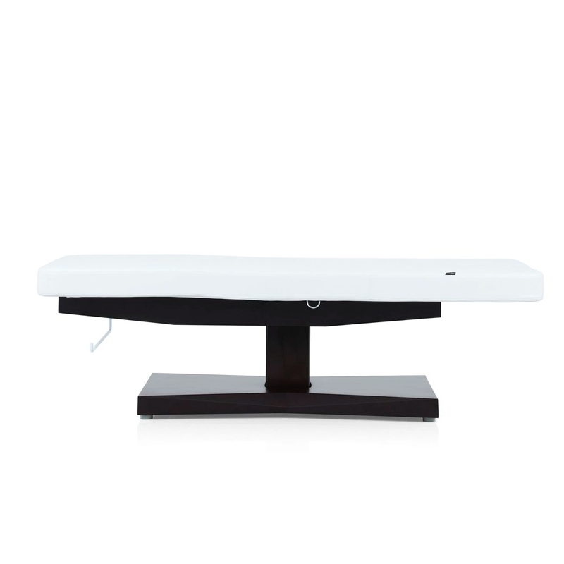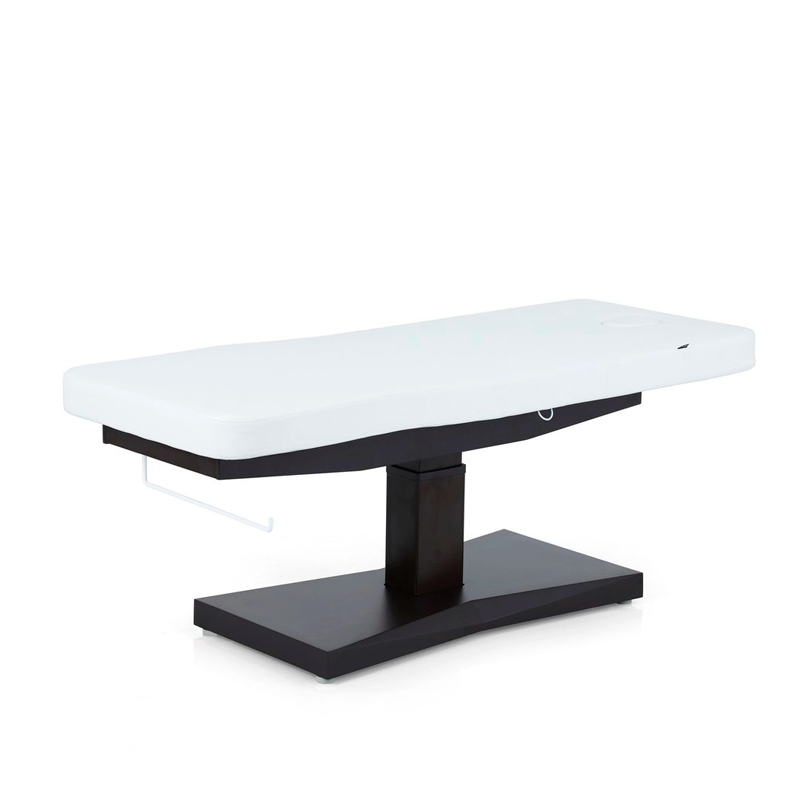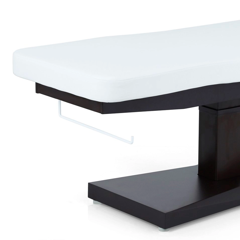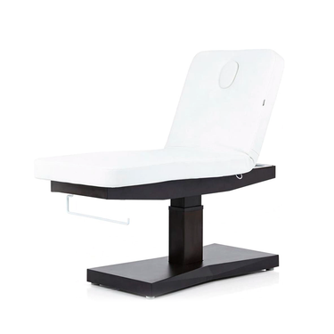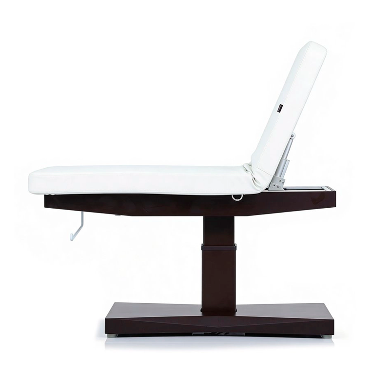 Tapizado en PU de fácil limpieza, montado sobre una elegante base de madera en color marrón. Diseñada para optimizar el trabajo diario, es ideal tanto para masajes como para tratamientos faciales y corporales.