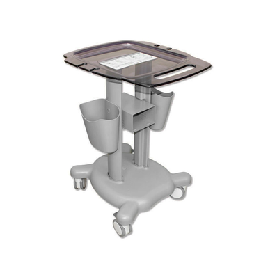 Este carro de alta calidad especialmente diseñado para ecógrafos Chison cuenta con cuatro ruedas estables y bloqueables, dos contenedores laterales para guardar materiales como el gel de ultrasonidos u otros accesorios y un estante central ideal para situar una impresora.