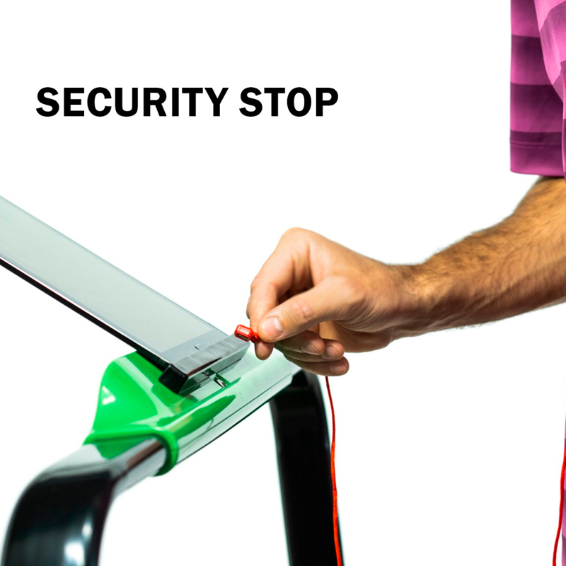 DOUBLE SECURITY SYSTEM: la cinta de andar NEW WALK ECO-DE® incorpora un manillar plegable con doble amortiguador, cuya rigidez garantiza la máxima seguridad. Indicado para que cualquier persona senior o en periodo de rehabilitación, pueda asegurar su estabilidad en todo momento. Enchufe retroiluminado de encendido. CE