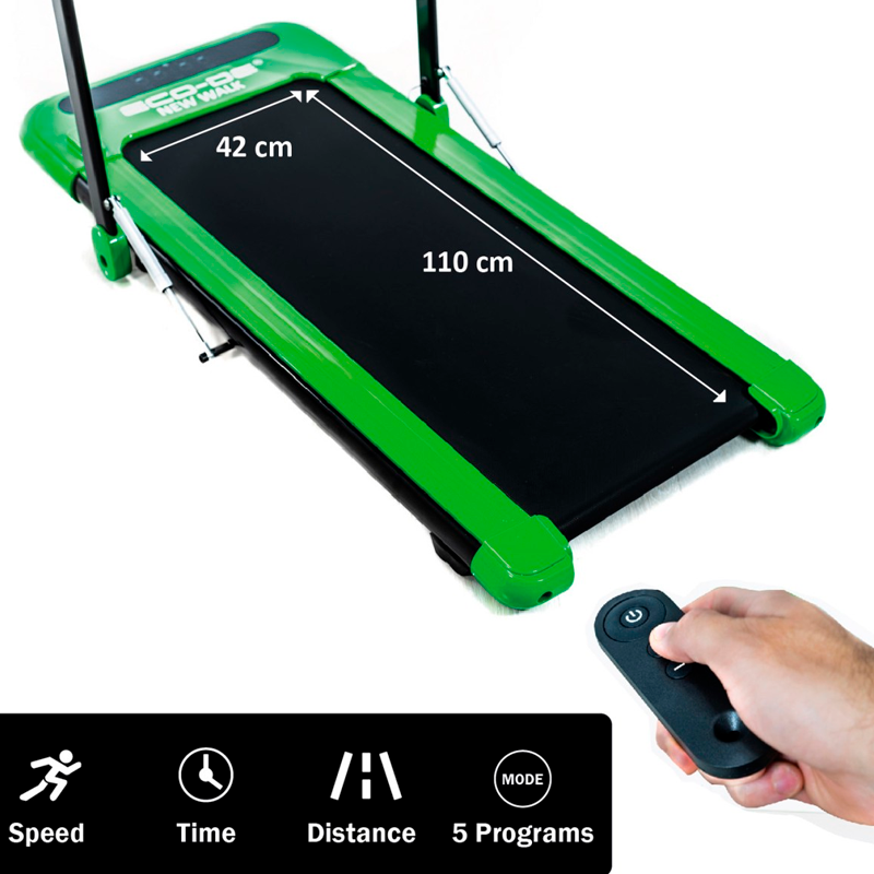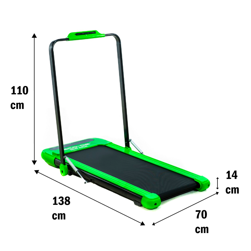 COMPACTA Y FÁCIL DE GUARDAR: la cinta de andar NEW WALK ECO-DE® tiene un tamaño de 138x70x110 cm, con una amplia superficie de pista de 110x42cm. La superficie de pista es la más grande en relación al tamaño de la cinta del marcado.