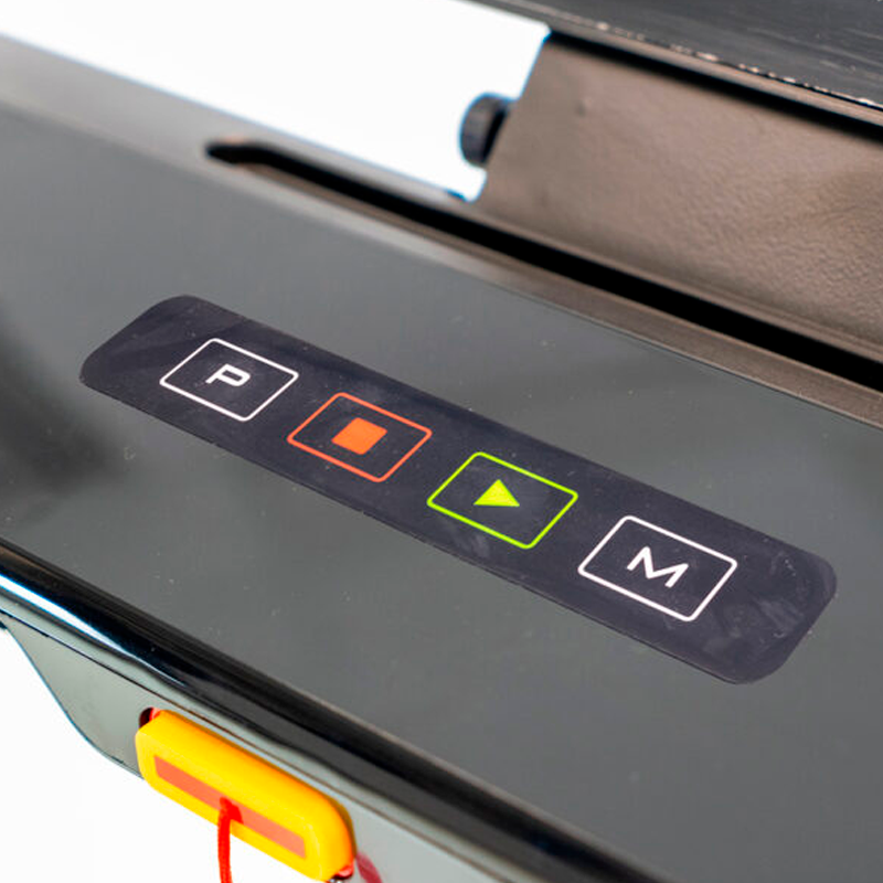 - Indicadores Tiempo, Distancia, Calorías, Velocidad, Pulso, Inclinación