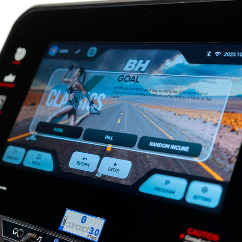 Equipada con un motor AC y capaz de alcanzar hasta 22 km/h, es la opción ideal para gimnasios, hoteles o salas con espacios reducidos. Gracias a su chasis plegable, permite optimizar el espacio sin renunciar al rendimiento. Equipada con una pantalla táctil de 16 pulgadas, lleva tu entrenamiento a otro nivel. Disfruta de música, series, vídeos y mucho más mientras te ejercitas.