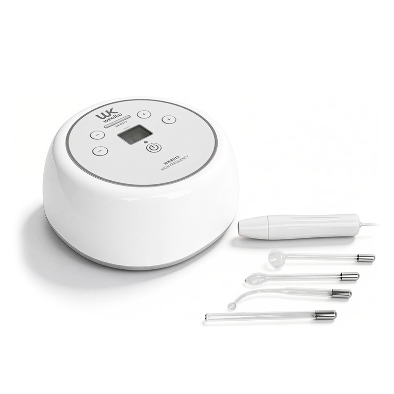 - 4 electrodos de neón intercambiables: seta, cuchara, bola, recto. Electrodo en forma de seta: para grandes zonas de la piel (cara, frente, cuello, etc.) Electrodo en forma de cuchara: para las zonas intermedias (mentón, labio, etc.) Electrodos en forma de bola: para áreas pequeñas, como la nariz. Tubo de electrodo recto: para el tratamiento indirecto.