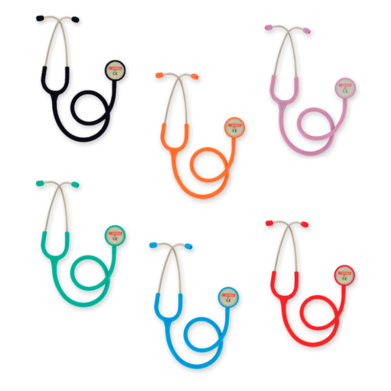 Estetoscopio de alta calidad con campana de acero inoxidable, binaural con doble resorte interno de acero inoxidable y tubo de PVC duradero y elegantemente moldeado para un rendimiento acústico inigualable.