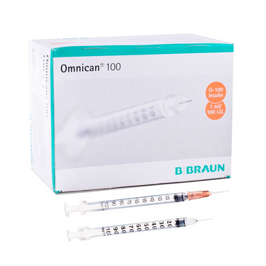 Jeringas de insulina OMNICAN, con graduación en unidades de insulina.