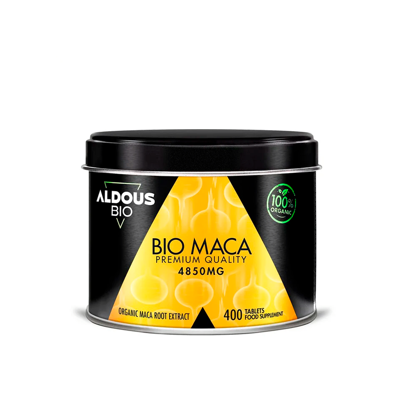 Eleva tu energía y tu deseo sexual con la Maca Andina Aldous Bio. Un extracto de maca con alta concentración (extracto 5:1) presentado 400 comprimidos para 100 días.