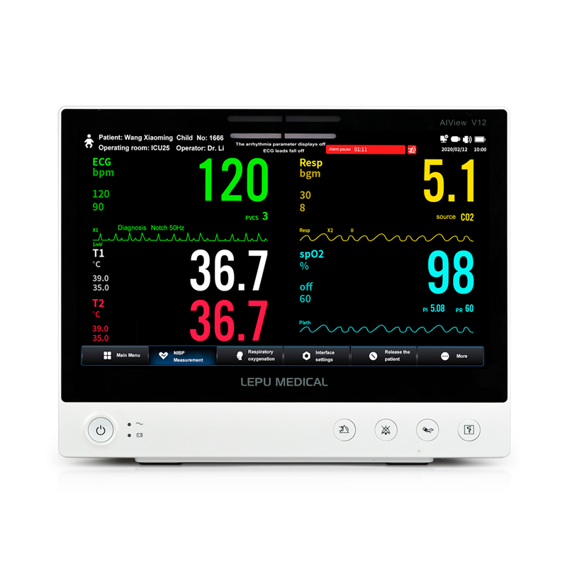 Su menú claro y conciso permite al personal médico aprender a usarlo fácilmente, mejorando significativamente su eficiencia. Monitorea ECG, pO2, frecuencia cardíaca, PANI, temperatura y presión arterial respiratoria (RESP). Se pueden visualizar hasta 5 derivaciones de ECG en la misma pantalla. AIVIEW ofrece diversos modos de monitorización que mejoran significativamente la experiencia de médicos y pacientes: modo nocturno, modo privado, modo de intubación y modo de monitorización en pausa. Para adultos, niños y bebés.