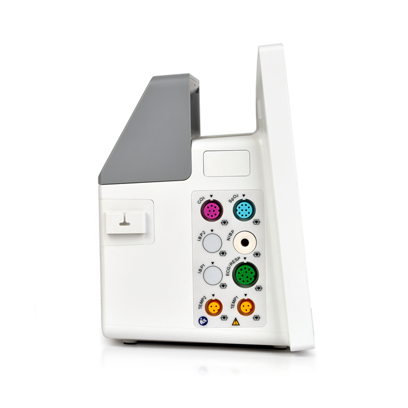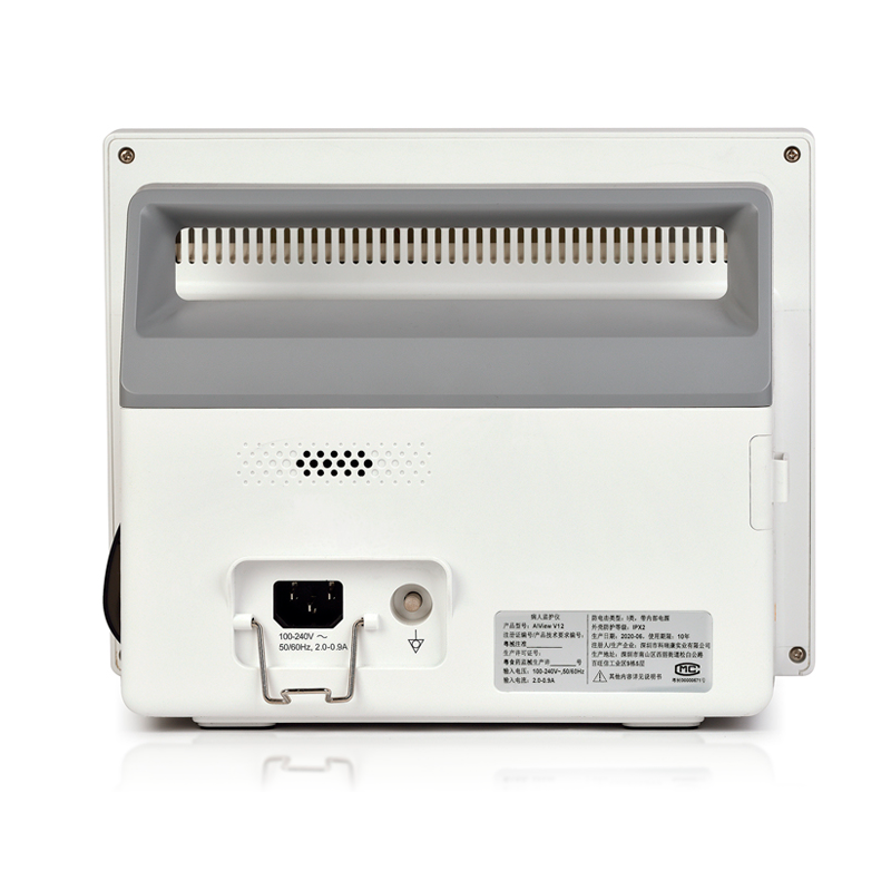de SpO2 : 0% a 100% Rango de medición de temperatura : 0°-50°C (32°-122°F) piel Memoria: Tarjeta SD interna de 8G Almacenamiento de datos: Grabadora NIBP: 2000 conjuntos / Datos de tendencias: 240 h / Eventos: 1000 conjuntos Puertos: 1 RJ45, 1 VGA, 2 USB, 1 multifunción Batería: batería recargable, 2750 mAh Tiempo de funcionamiento: más de 4 horas Tamaño: 290x170x230 mm Peso: =3 kg Protección: IPX2, anti descarga eléctrica tipo CF Voltaje: 100-240 V, 50/60 Hz