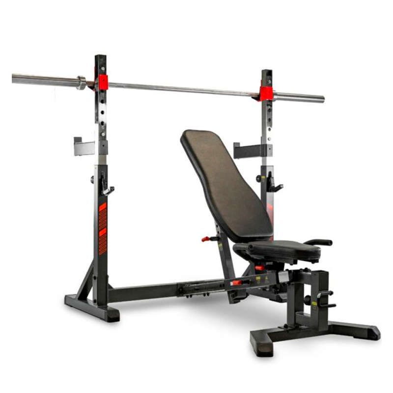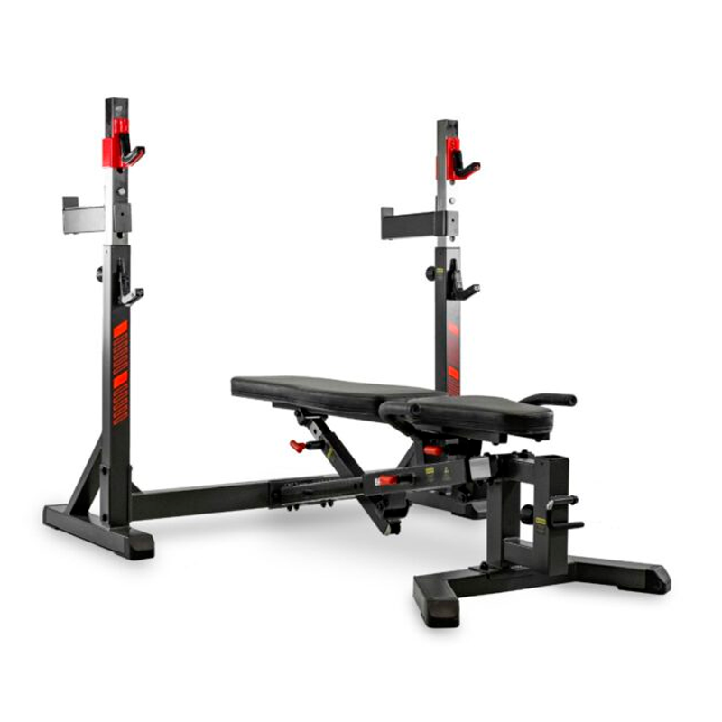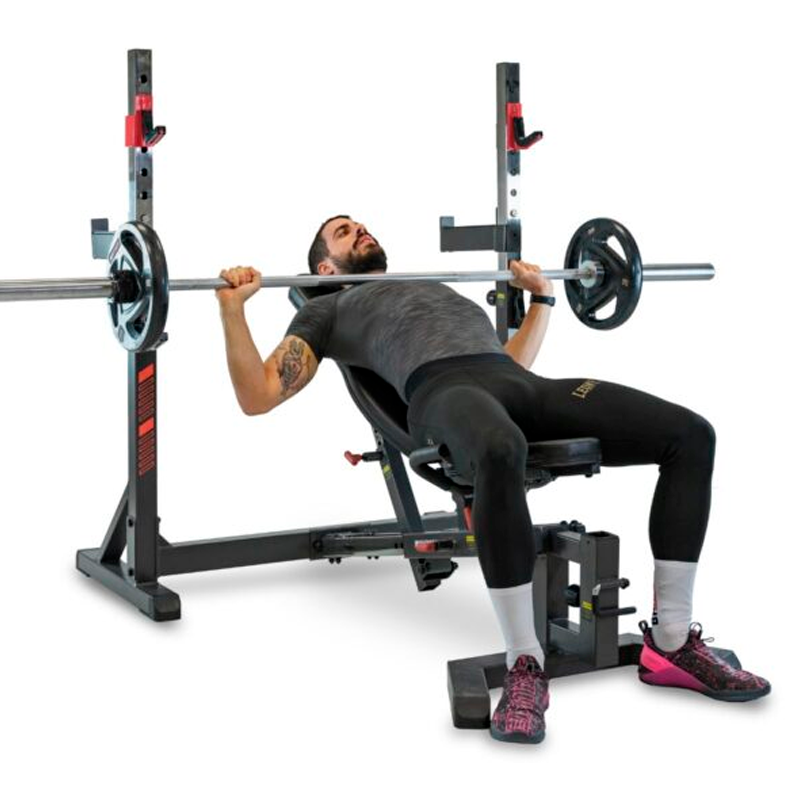 Con múltiples ajustes de banco y postes regulables, permite trabajar en horizontal, inclinado o declinado. Además, puede convertirse en rack de sentadillas y ampliarse con accesorios opcionales para entrenar pecho, deltoides, bíceps o cuádriceps.