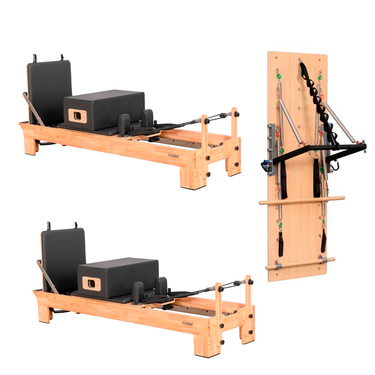 Descubre el Pack perfecto para estudios, centros de fitness o entrenamientos profesionales en casa, que combina nuestro Reformer Clásico StartPro de alta gama con un Wall Unit de pared incluido de regalo. Este conjunto versátil te ofrece una completa solución para trabajar fuerza, control postural, flexibilidad y movilidad, respetando los principios del método clásico de Pilates.