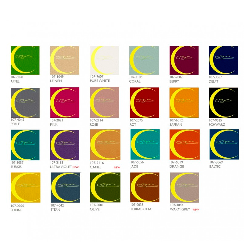 Varilla de acero calibrado de 14mm cromada, base tablero contrachapado de madera cubierto de espuma de 5cm y densidad 25 kg forrada en polipiel ignifuga, antibacteriana, antimicótica e impermeable, resiste a los rayos V e intemperie.