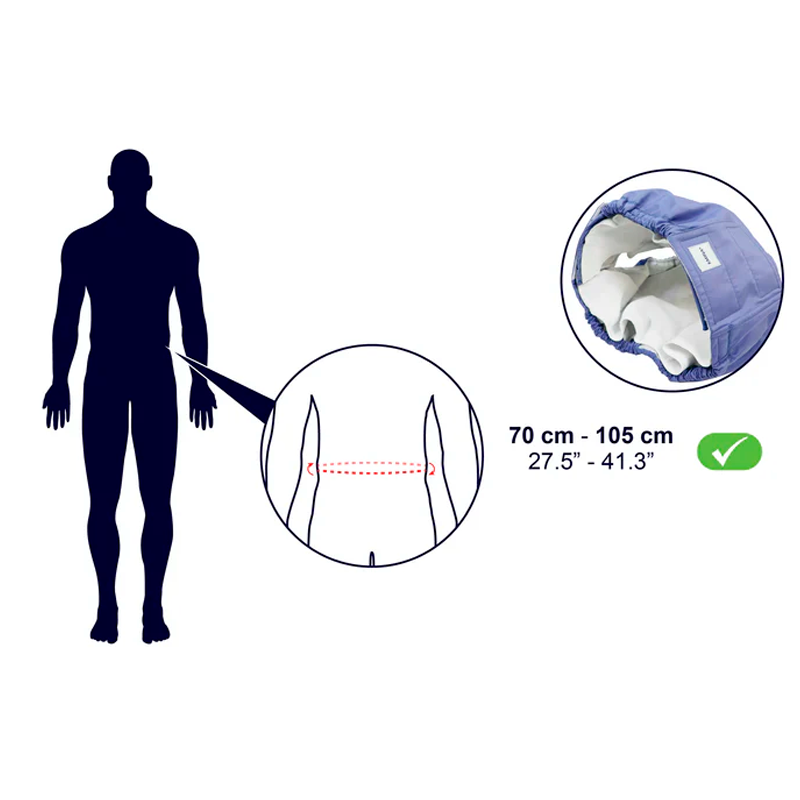 Antes de comprar, comprueba que tu cintura mide entre 70 y 105 cm. Si es así, podrás usar el protector de pañal sin problema.