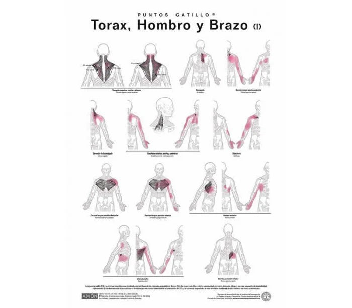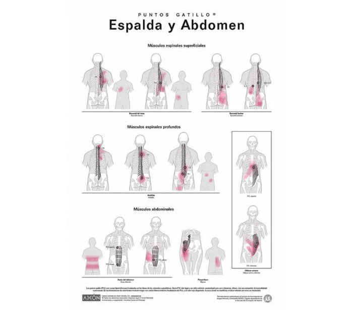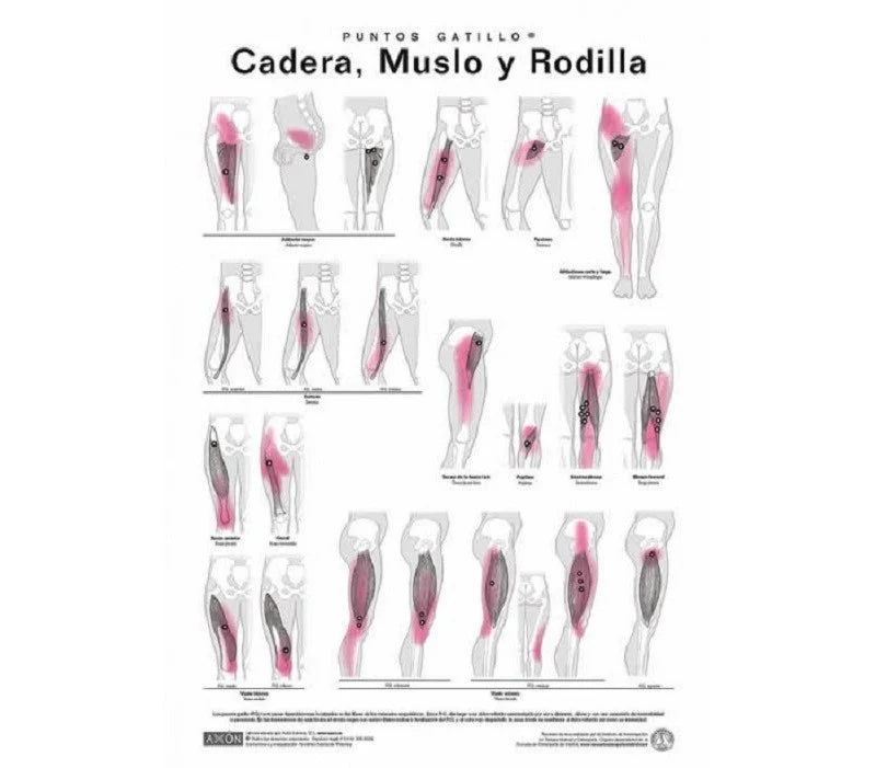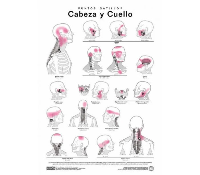 Este conjunto completo incluye láminas de referencia detalladas que mapean los puntos gatillo más relevantes del cuerpo humano, facilitando la identificación precisa de zonas de tensión muscular y facilitando el tratamiento miofascial. Ideal para clínicas, centros de rehabilitación y profesionales independientes, estas láminas permiten una evaluación sistemática y una comunicación clara con los pacientes sobre las áreas de trabajo.