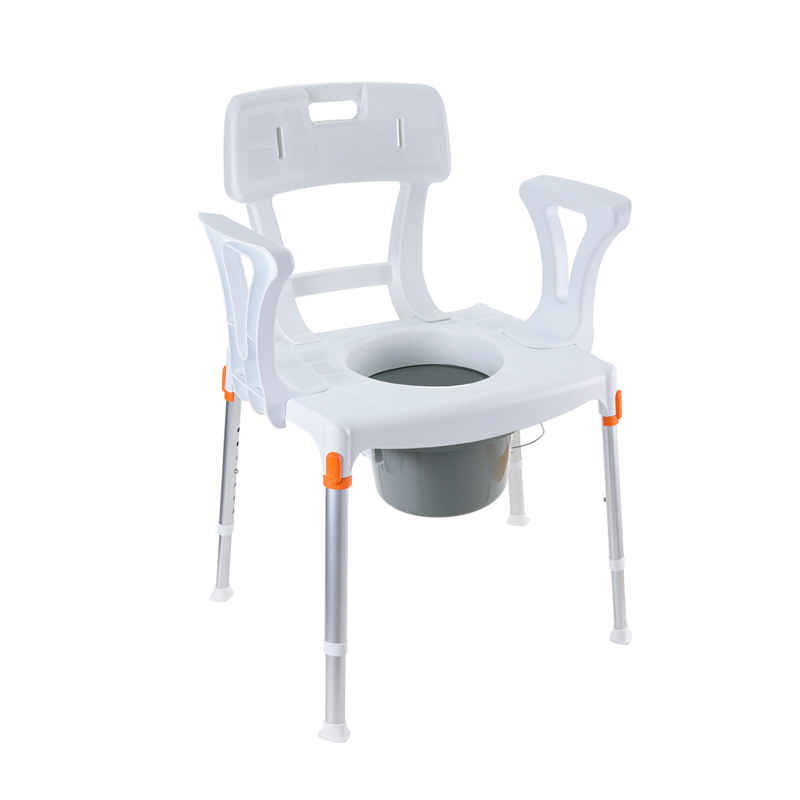 2- Elevador de inodoro con reposabrazos y respaldo. Resulta muy funcional y estable. La silla puede ajustarse en altura y ligeramente en ángulo de inclinación para que sea más fácil levantarse del wc.