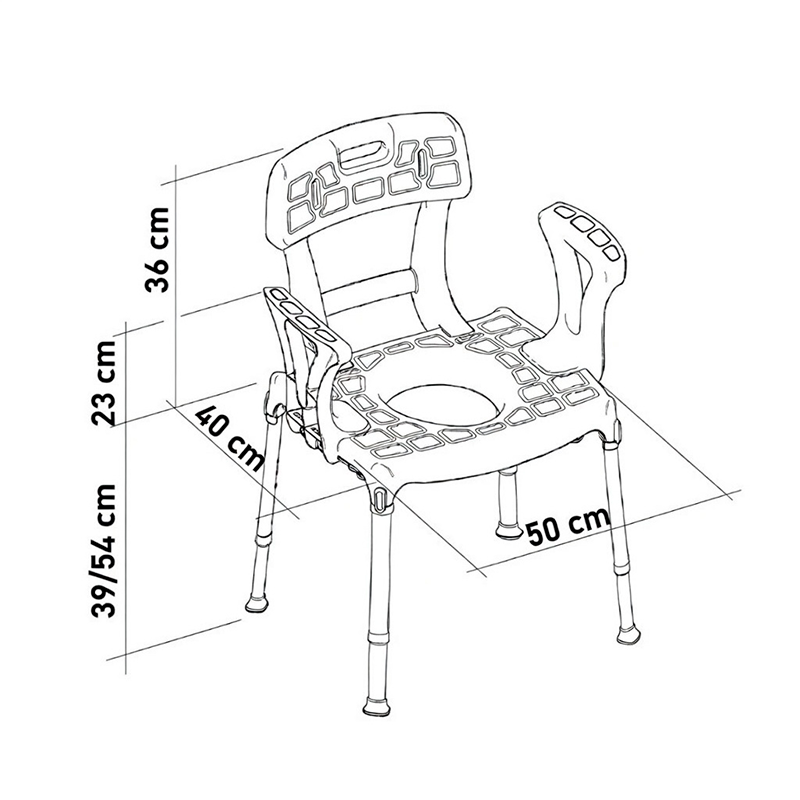 También se puede colocar directamente sobre el wc y usarla como elevador. Si colocamos la tapa blanda sirve cono silla de ducha, lo que la hace muy versátil para cualquier situación. Se monta completamente sin herramientas.