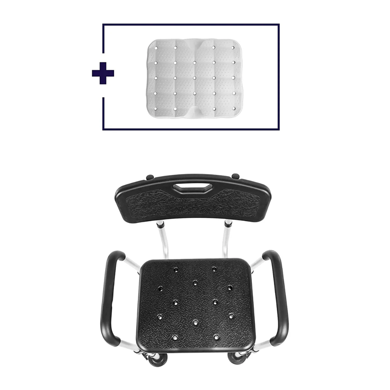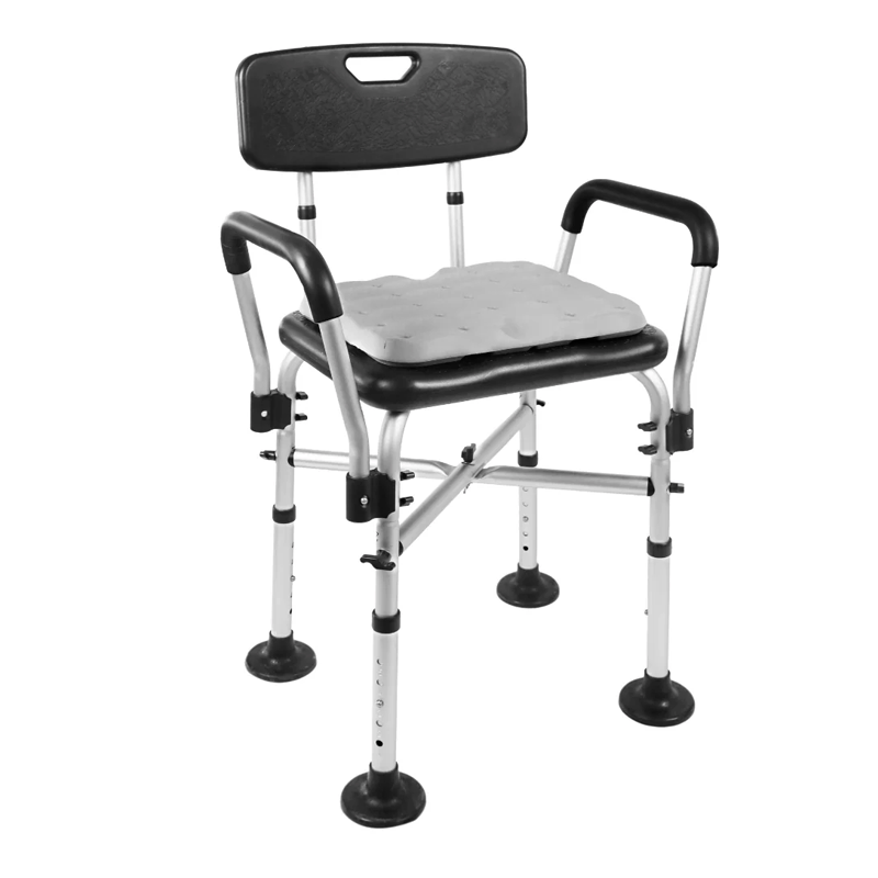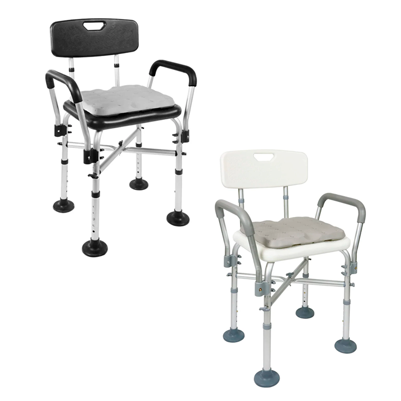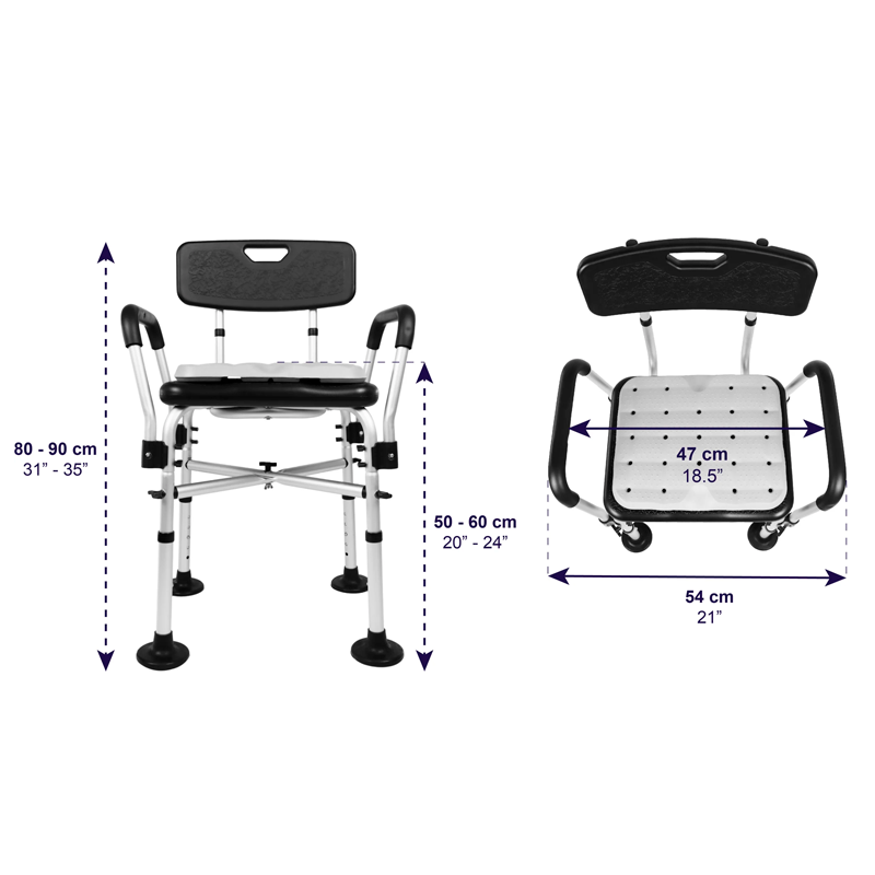 Comprueba que tu ducha es mayor que 58 cm de ancho si tiene paredes, ya que el ancho total entre los reposabrazos es de 54 cm y de esa forma entrará perfectamente.