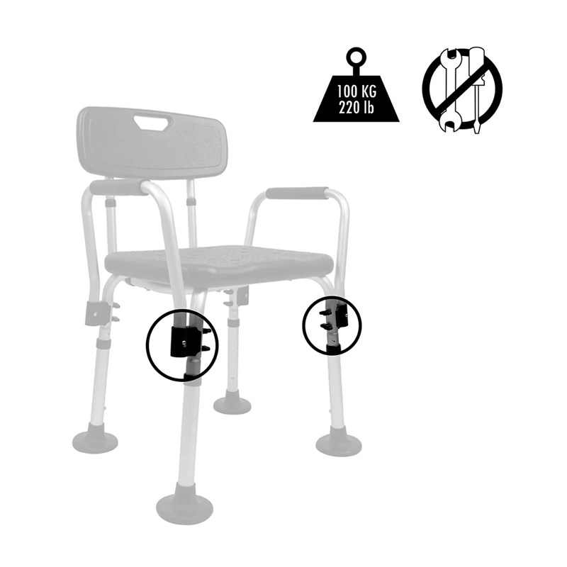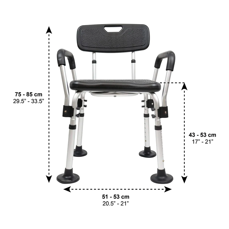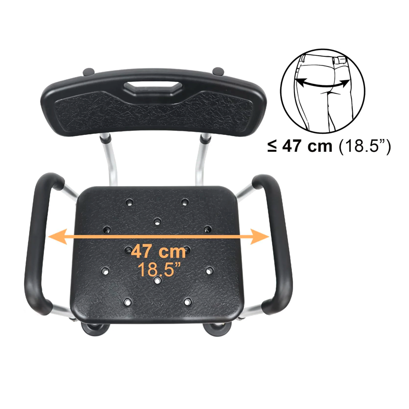 Comprueba que tu ducha es mayor que 58 cm de ancho si tiene paredes, ya que el ancho total entre los reposabrazos es de 54 cm y de esa forma entrará perfectamente.