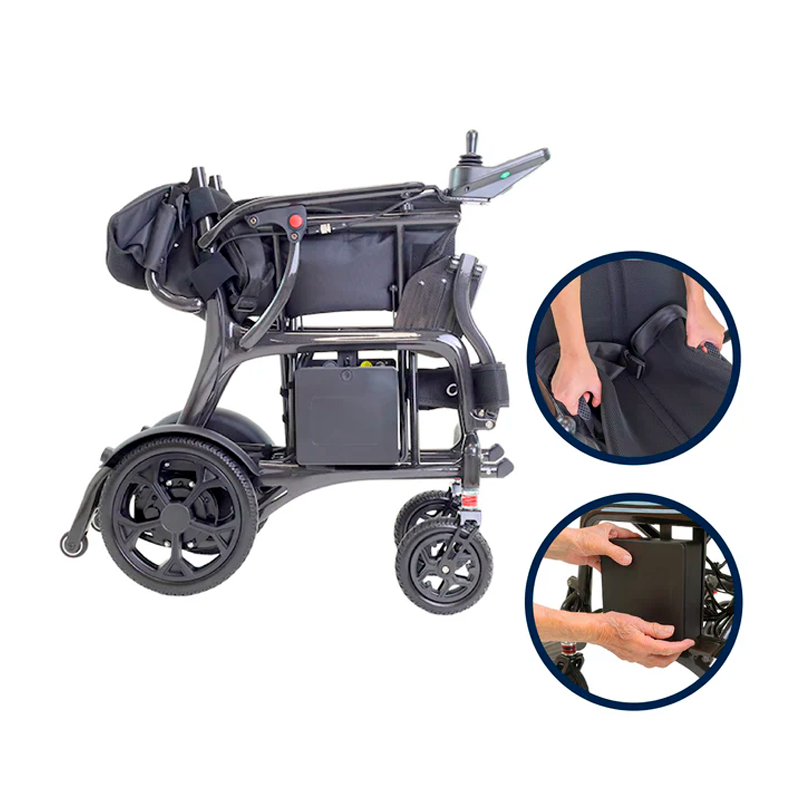Esta silla de ruedas eléctrica está diseñada con una estructura ligera de fibra de carbono que ofrece máxima seguridad, estabilidad y durabilidad, siendo la opción perfecta para quienes valoran la comodidad, la resistencia y un diseño moderno.