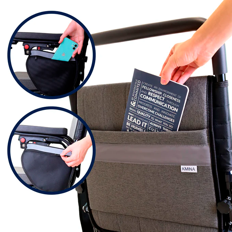 COMPLEMENTOS ADICIONALES: Equipada con bolsillo trasero de almacenaje, bolsillos laterales con cremallera y cinturón de seguridad para una conducción segura en todo momento. Incluye ruedas antivuelco que mejoran la estabilidad en pendientes o superficies irregulares.